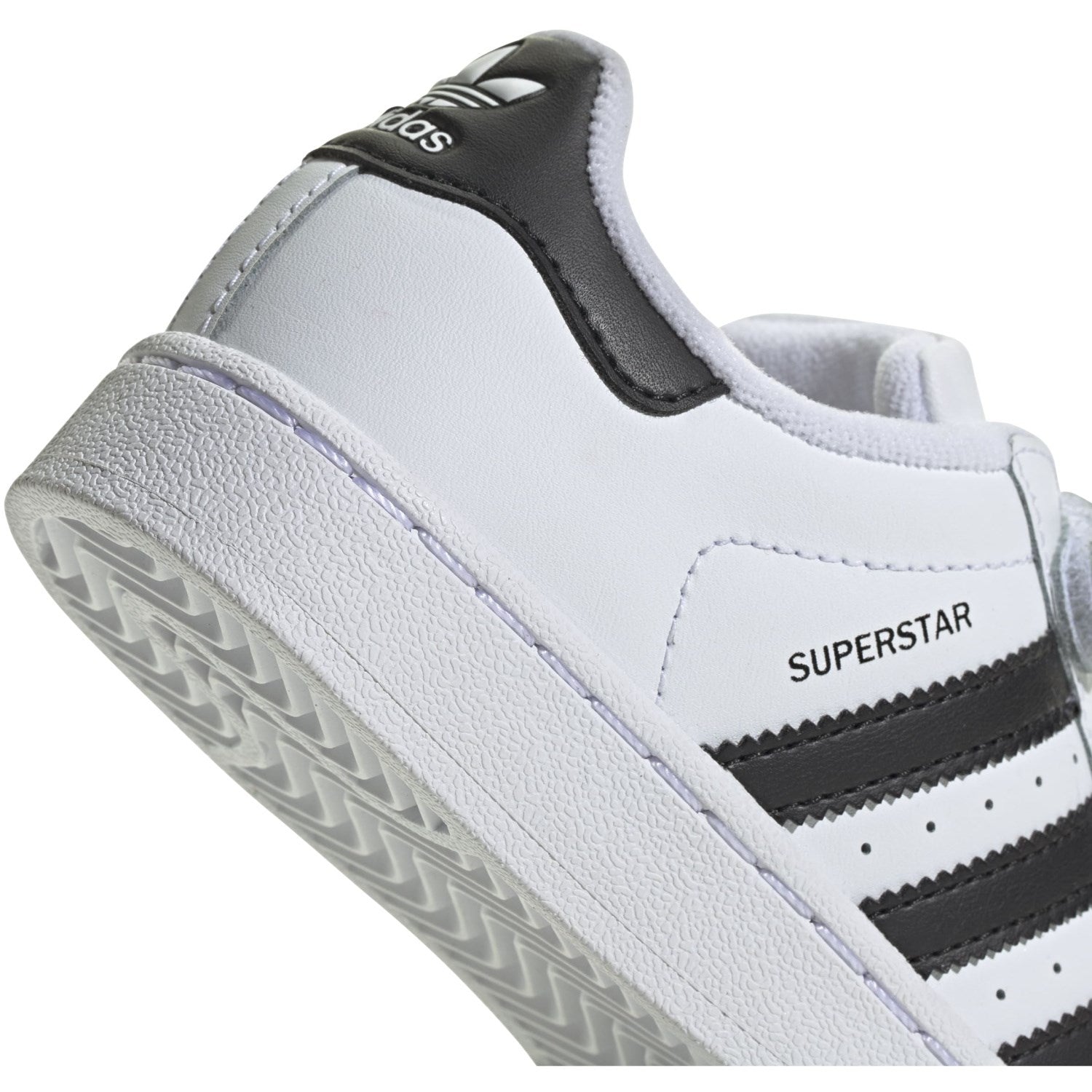 - Ekstra: Taggete 3-striper, Superstar-bokslogo på pløsen, Trefoil-logo på hælfliken.
