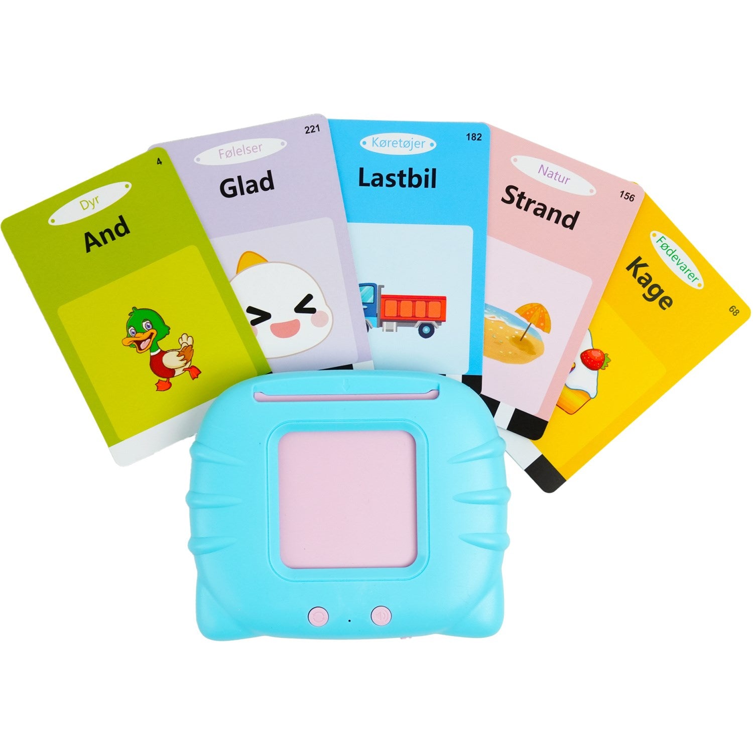 - Ekstra: Den kommer med 112 kort med 244 ord. Det er bilder og ord på begge sider. Enheten lades enkelt med USB-kabel som følger med