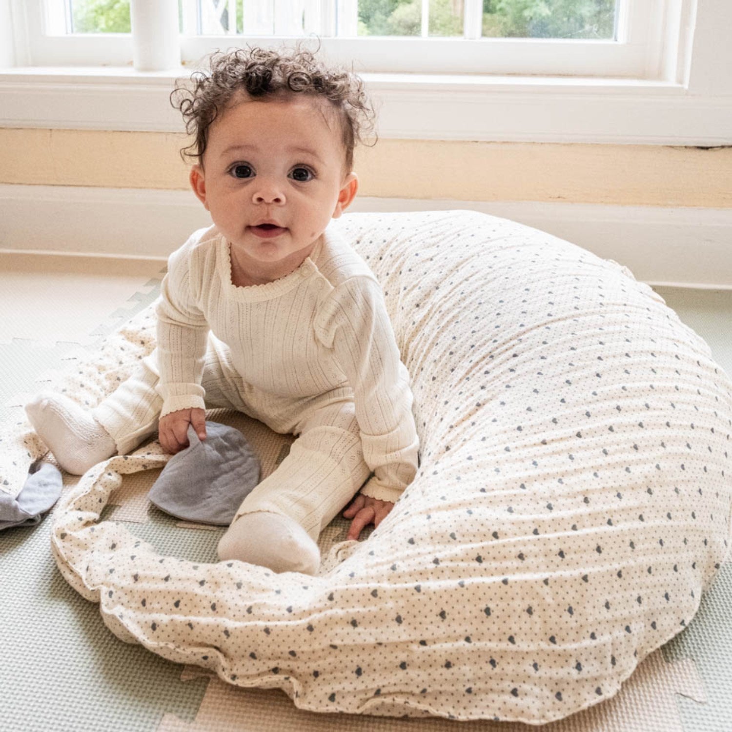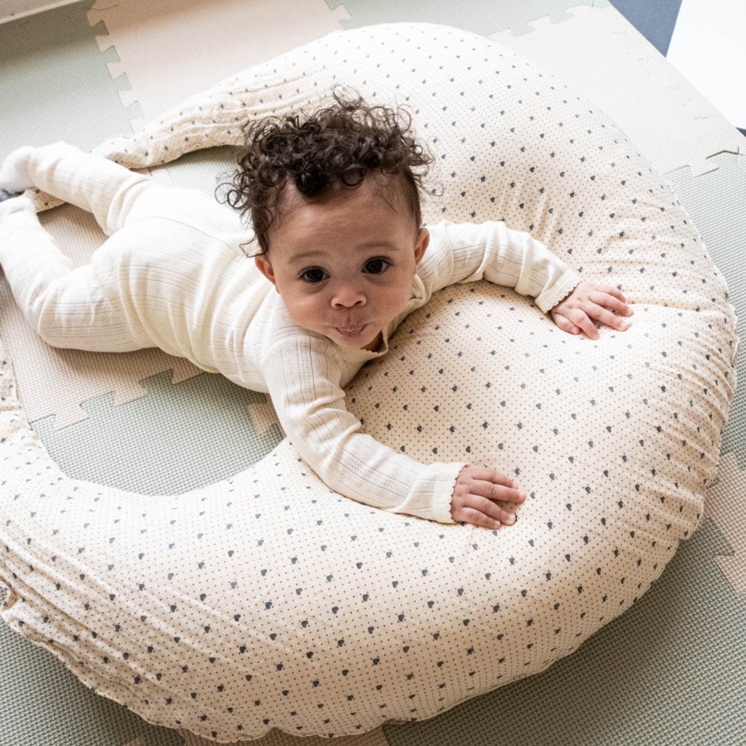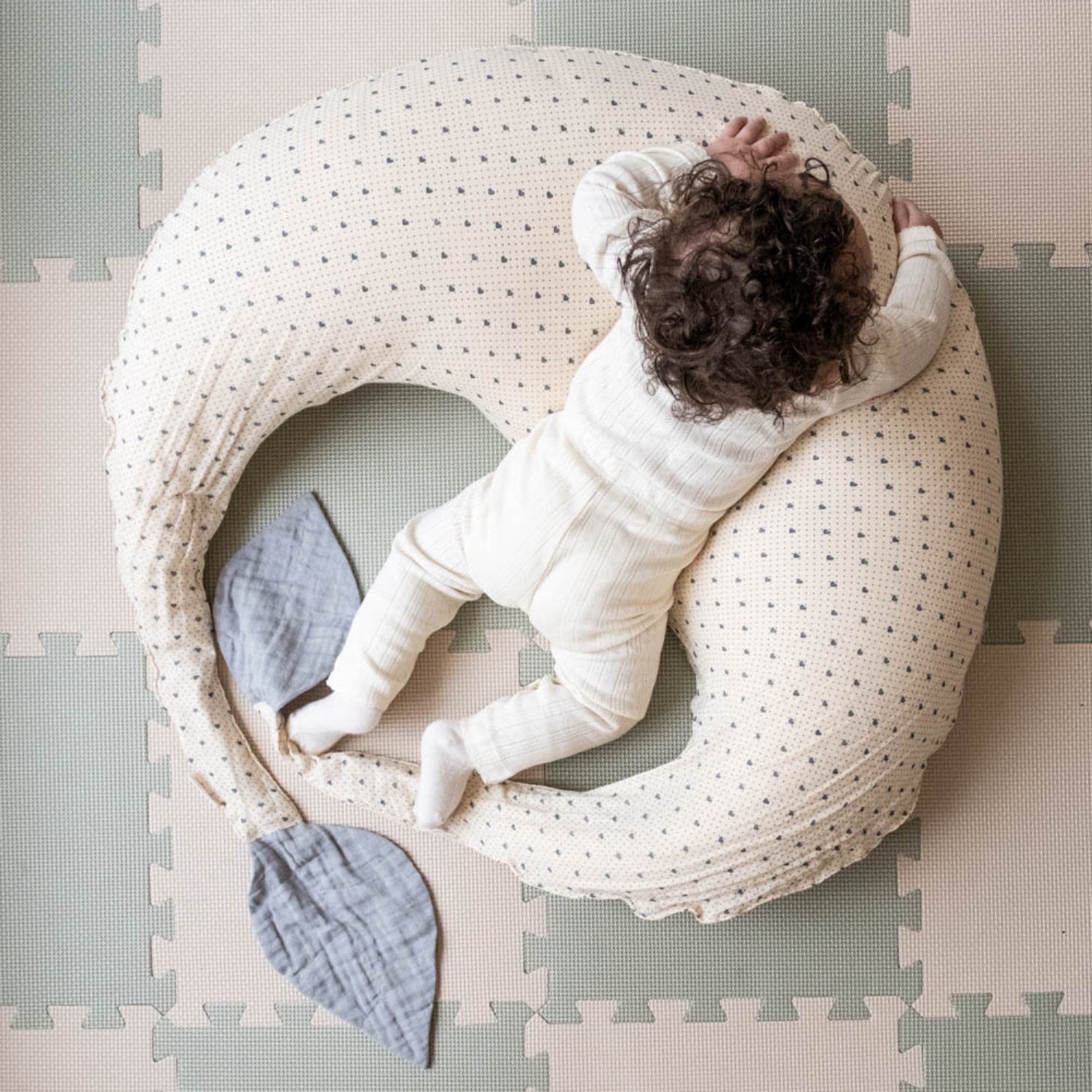 Oppdag den ultimate komforten med That's Mine Lots Of Love Sky Moon ammepute, spesielt designet for å støtte både mor og barn under amming. Denne innovative og multifunksjonelle ammeputen er ideell for å håndtere amming av tvillinger, takket være dens ekstra lengde. Sikkerhet og komfort går hånd i hånd, ettersom puten lett kan formes etter behov og festes rundt kroppen for stabil støtte. Den er også utstyrt med myke blader på hver ende, som fungerer som trøstende kluter for babyen. Lett å vedlikeholde og bærbar, denne ammeputen er perfekt for hjemmebruk og på reiser. Gi ditt barn den beste starten med denne komfortable og praktiske løsningen for daglig omsorg.