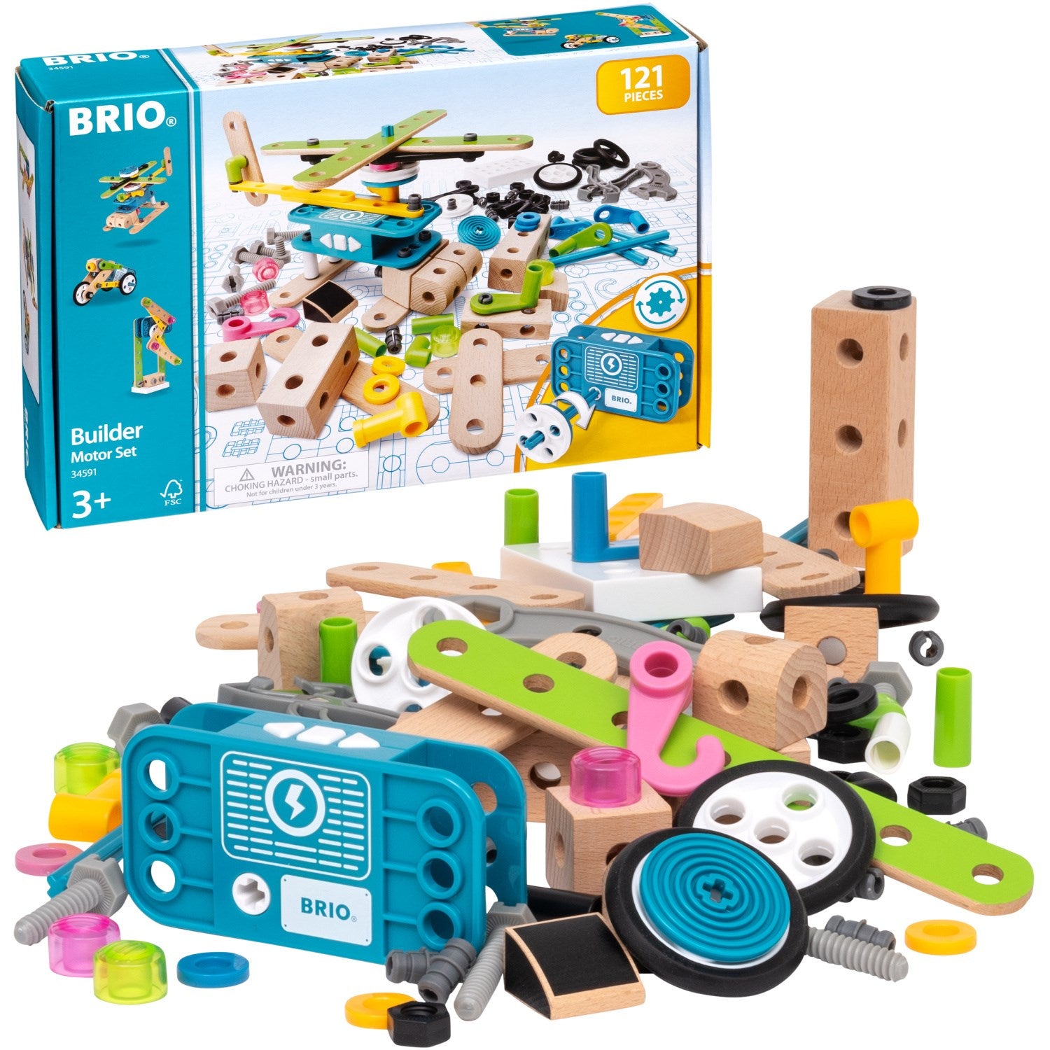 Oppdag gleden ved å bygge med BRIO® 34591 Builder Motor Sæt! Dette innovative byggesettet er designet for å stimulere barnas kreativitet og byggeferdigheter. Med 121 deler og en batteridrevet motor, kan barna sette sammen modeller som beveger seg. Motoren er enkel å bruke med funksjoner for å kjøre forover, bakover og stoppe, noe som gir endeløse muligheter for lek og læring.