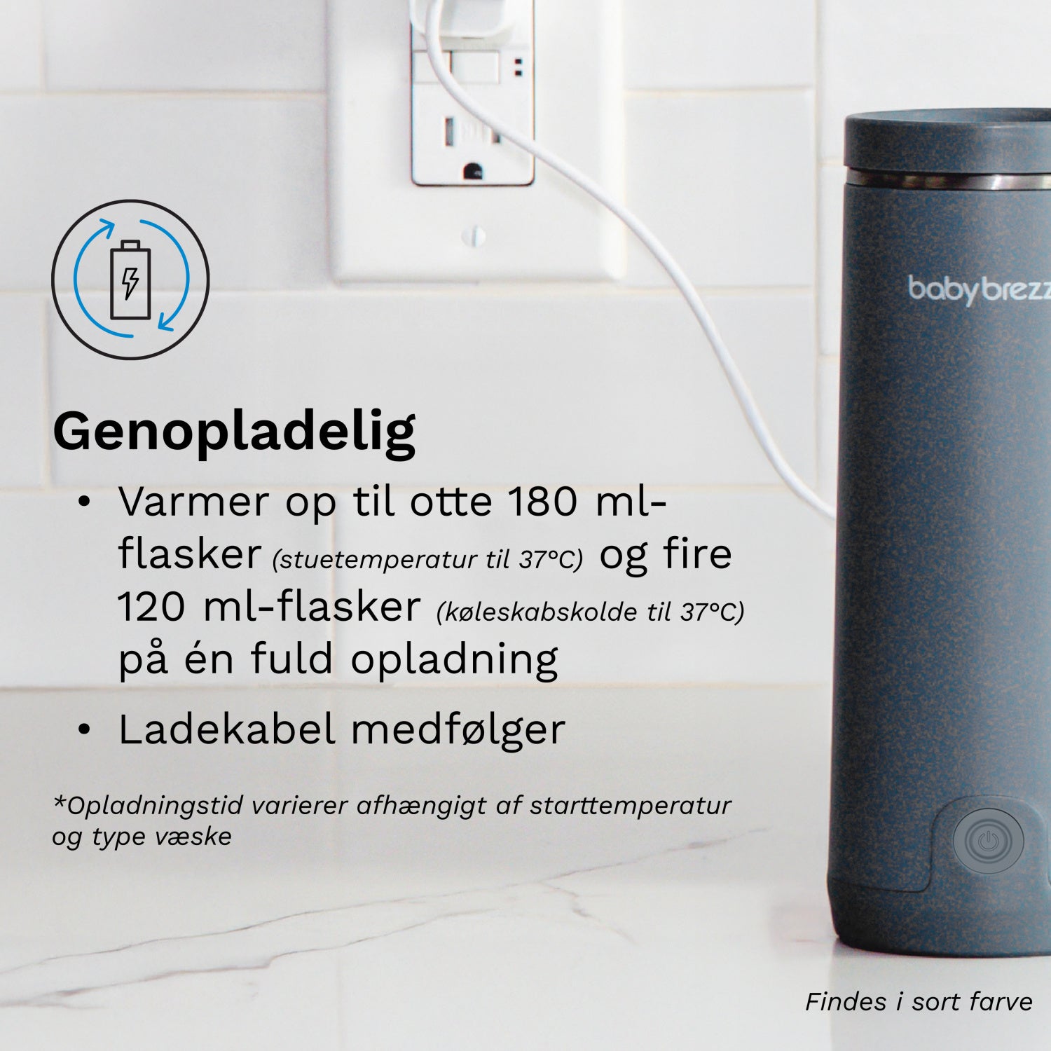 - Trådløs frihet - batteriteknologi varmer opp til åtte 180 ml flasker (fra romtemperatur til 37 °C) eller fire flasker (fra kaldt til 37 °C) på én lading