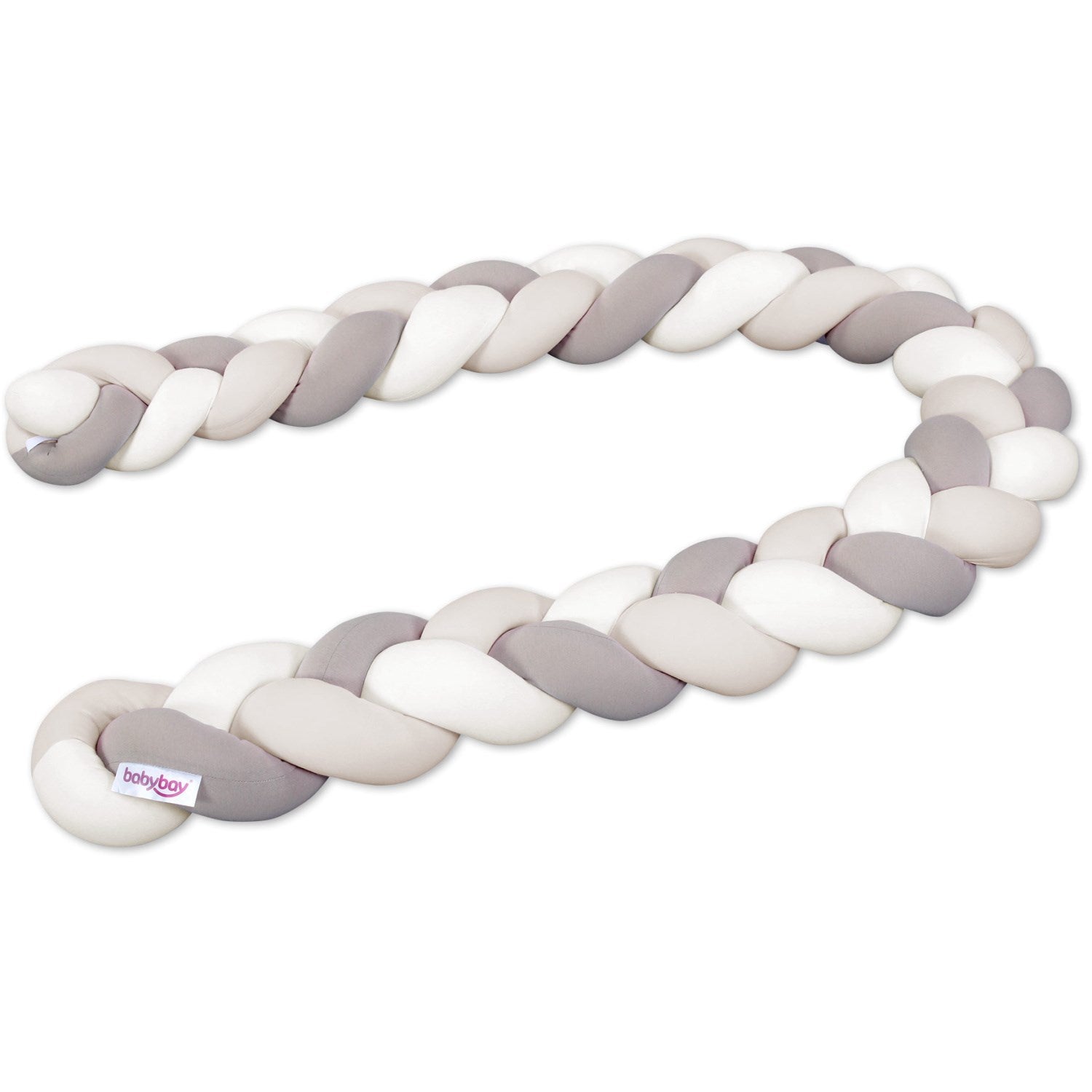 Gjør barnerommet tryggere og koseligere med babybay® sin flettet sengekant i nydelig elfenbens, beige og kremfarge. Denne 280 cm lange hekkeslangen er laget av myk, kjemmede bomullsjersey og tilbyr utmerket beskyttelse mot trekk samtidig som den hindrer kontakt med sprinkelsengens harde kanter. Det allergivennlige silikonullfyllet sikrer optimal fasthet, og sørger for at barnet ditt sover trygt og behagelig. Multifunksjonaliteten til hekkeslangen gjør den anvendelig ikke bare i sengen, men også som lekesone eller sittepute når den er rullet sammen. Vedlikeholdet er enkelt, da det holder med en maskinvask på 40°C. Tested og godkjent i henhold til Ökotex Standard 100 klasse 1 for babyer, bevise at alle materialer er trygge for ditt barns helse. La barnet oppleve både spenning og avslapning med dette stilige og praktiske tilbehøret til barnerommet.