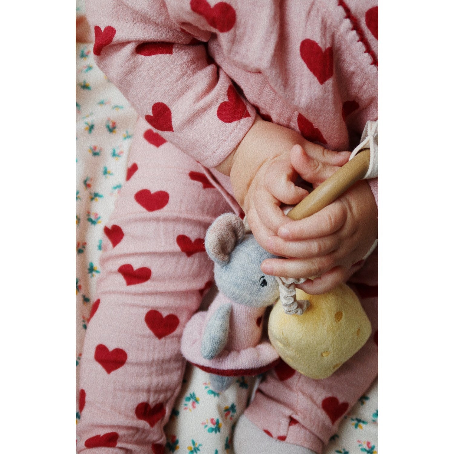 Oppdag den sjarmerende King's Woodwork Mouse Activity Toy, en uunnværlig aktivitetsleke designet for de små. Denne milde ringen er ikke bare søt med sine myke små bamser, men også trygg og innbydende for babyer fra 0 måneder. Lekene er nøye laget av en økologisk bomulls- og ullblanding, noe som sikrer et miljøvennlig og trygt produkt for barnets første oppdagelsesreiser. King's Woodwork Mouse Activity Ring tilbyr ikke bare moro, men også en rekke utviklingsmessige fordeler. Den er designet for å stimulere de smås sanser og bidrar til utviklingen av deres motoriske ferdigheter. Den praktiske silikonringen gjør leketøyet lett å gripe og holde på, noe som fremmer barnets interaktive lek og nysgjerrighet. Takket være det enkle vedlikeholdet og holdbarheten, er denne aktivitetsringen ikke bare ideell for daglig bruk, men også enkel å ta med seg på farten. Oppdag hvordan Konges Sløjd har kombinert funksjonalitet med stilig design, og gi barnet ditt en lærerik og underholdende barndom.