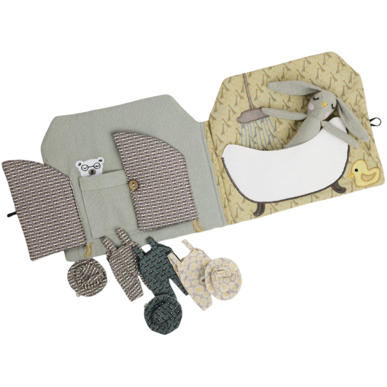 Oppdag gleden med Smallstuff Bathroom Tiny House Bok, en sjarmerende aktivitetsbok som inviterer til lek og læring. Denne stoffboken, featuring en søt kanin og tre sett matchende kjeledresser og luer, er laget av 100% bomull med et miljøvennlig PET-fyll fra resirkulerte plastflasker. Med sine kompakte dimensjoner på 22x21 cm og anbefalt for barn fra 3 år og oppover, er den ideell for små hender å utforske. Boken er lett å vedlikeholde; bare vask på skånsom syklus ved 30 grader. Ta den med overalt – perfekt for underholdning i bilen, på restaurant eller for en rolig stund hjemme.