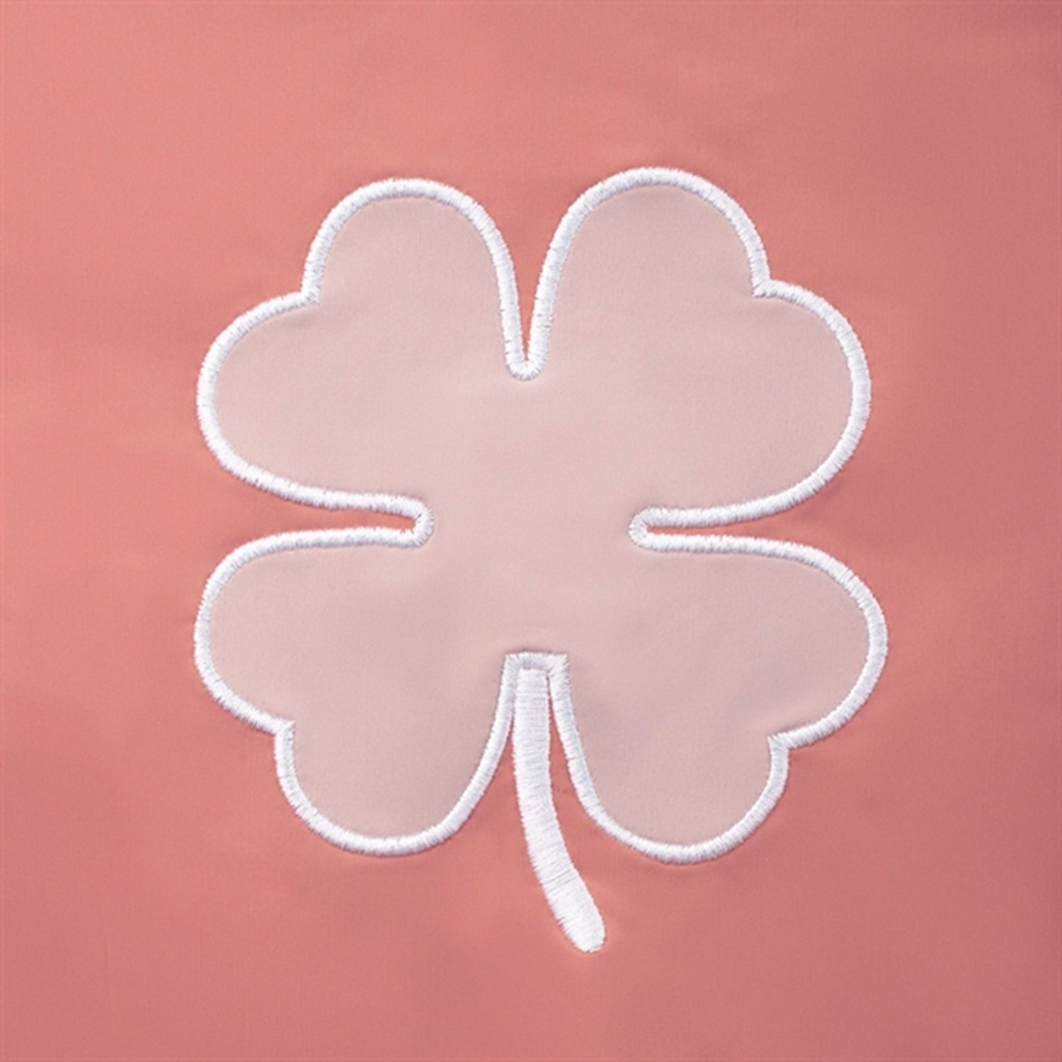 Denne er i en fin mørk rosa farge med en fin liten kløver bak i lys rosa.