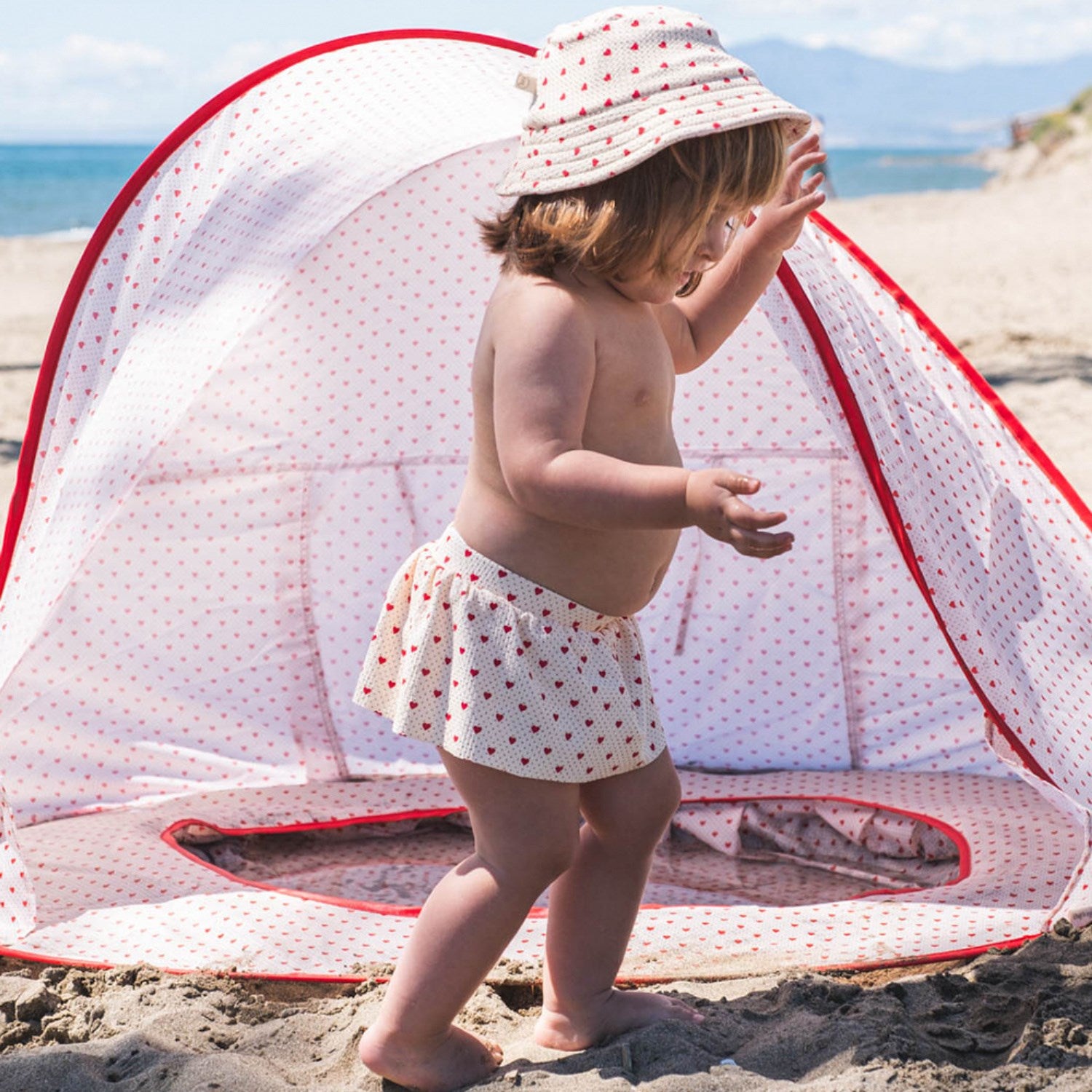 Gi barnet ditt den ultimate beskyttelsen og stilen med That's Mine Lots Of Love Red Sol Badehatt. Denne sjarmerende badehetten er designet med lekre mønstre og i en iøynefallende rød farge, perfekt for sommerens utflukter. Hetten er laget for å være behagelig med sin myke konstruksjon, og passer utmerket til aktive dager på stranden eller rolige stunder ved bassenget. Med sin praktiske og moteriktige utforming, sørger denne badehetten for at ditt barn både ser bra ut og får effektiv beskyttelse mot solen.