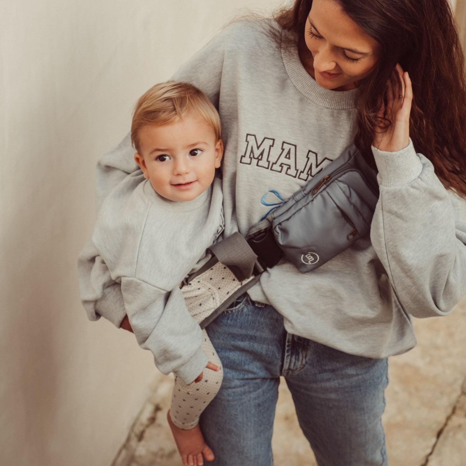 - Bæreselen kommer med en praktisk avtakbar pose som er perfekt for oppbevaring av nødvendigheter som nøkler, telefon og babysmokk, slik at alt du trenger er innen rekkevidde