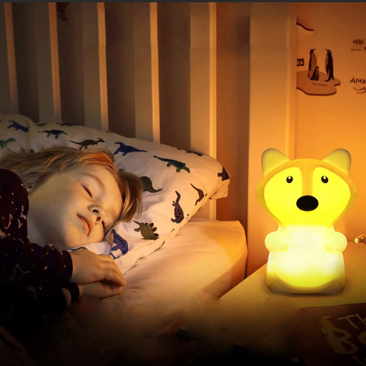 NiteLite Fox er en ideell nattlig følgesvenn som skaper en trygg, behagelig, og lærerik atmosfære i barnas sovemiljø. Materialer: Myk giftfri silikon