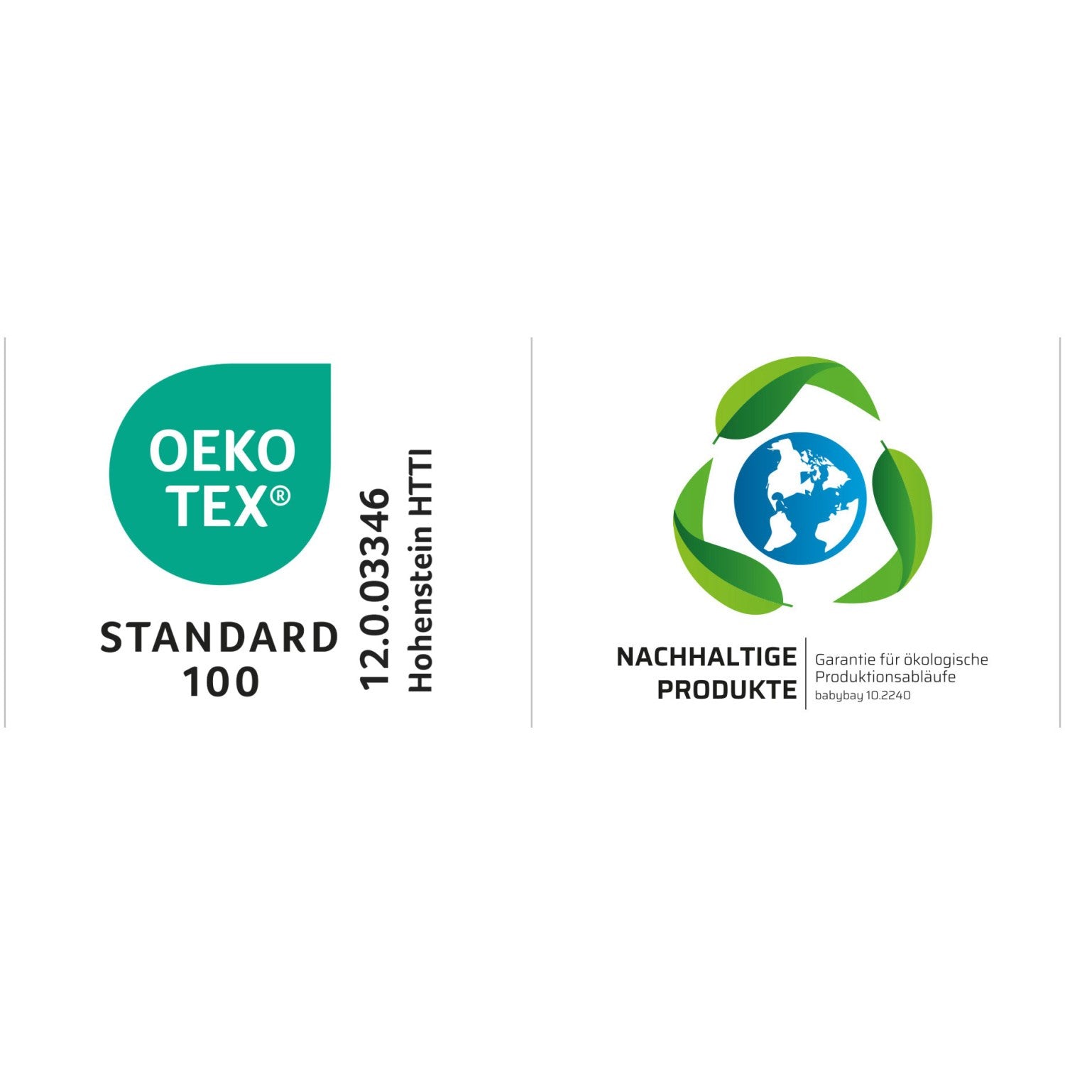 - Testet for skadelige stoffer og har blitt tildelt sertifikatet "Trust in textiles" i henhold til Ökotex Standard 100 klasse 1 for babyer (nr. 12.0.03346).