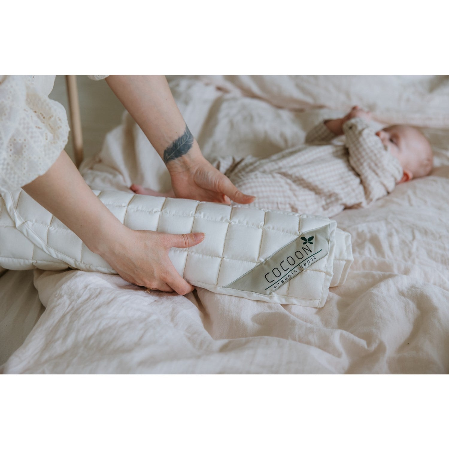 Gi din lille skatt den beste starten på livet med Cocoon Kapok Madras Original, en økologisk og allergivennlig løsning for trygg søvn. Denne madrassen er fylt med 100% økologisk kapok og kledd i sertifisert økologisk bomull, noe som gir en perfekt blanding av komfort og økologisk forsiktighet. Med sin naturlige varmeregulering opprettholder madrassen en ideell temperatur året rundt, sikrer at babyen din ikke blir for varm eller kald, og transporterer effektivt fuktighet bort. Kapokfibrene er bemerkelsesverdig motstandsdyktige mot både bakterier og midd, noe som holder madrassen frisk og hygienisk. Cocoon Kapok Madras er lett å vedlikeholde og støttes av EU-standard EN 16890:2017+A1:2021 for å forsikre deg om din barns sikkerhet. Gunstig, denne madrassen støtter også flerbruk, og kan tilpasses med tilleggsprodukter fra samme serie for optimalisert komfort og proteksjon. Velg Cocoon Kapok Madras Original for en sunn, behagelig og sikker søvn til den du er mest glad i.
