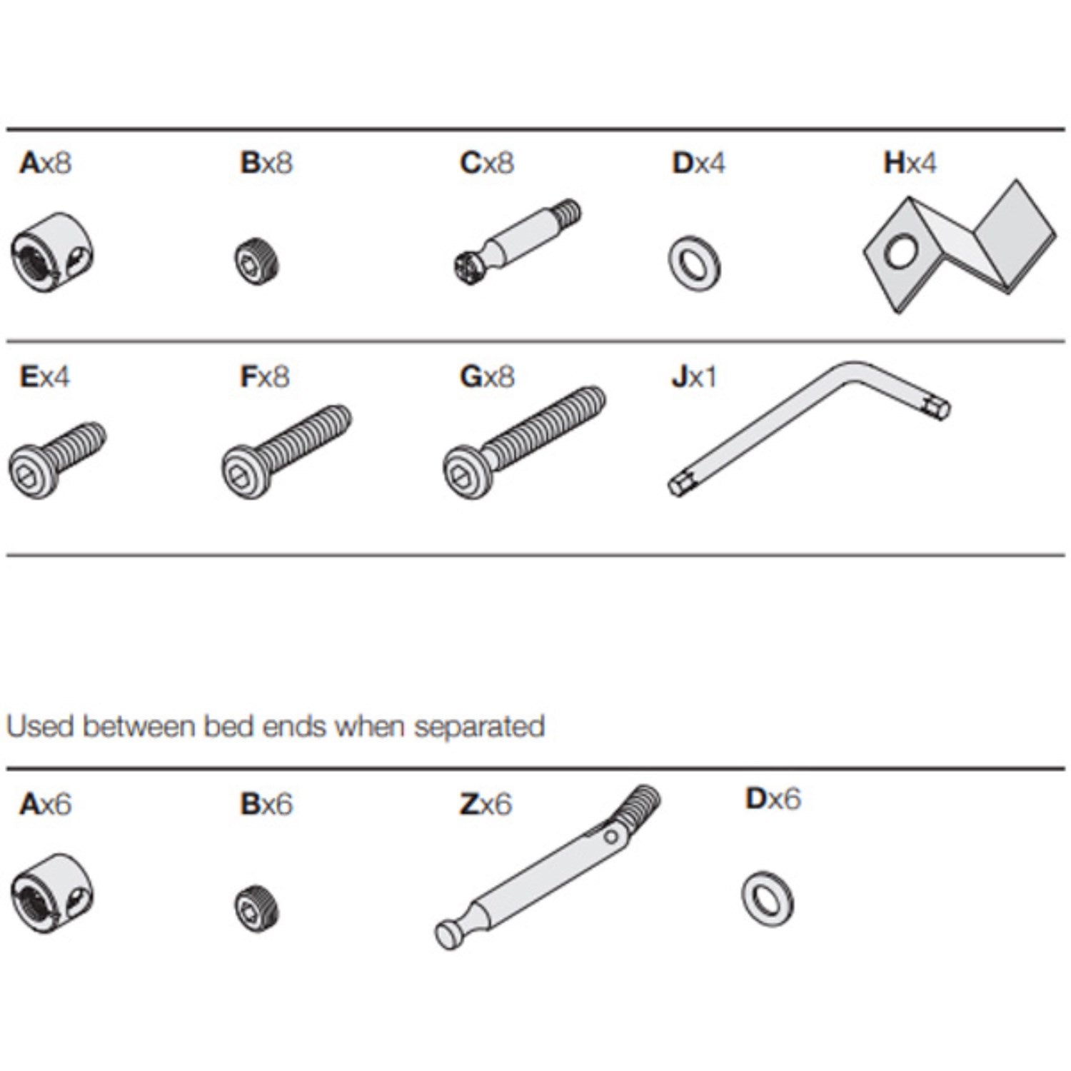 Posen indeholder alle skruer, der skal bruges til at udvide / ombygge sengen til en juniorseng og tilbage til en babyseng.