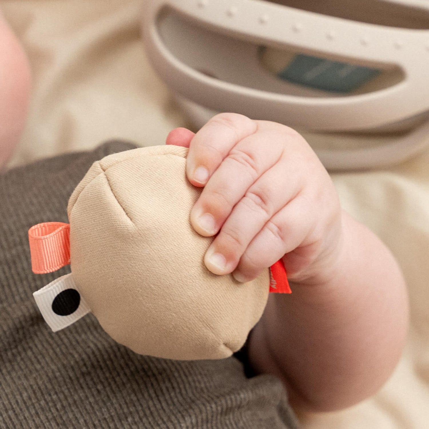 Dets forskjellige teksturer og lyder gir en rik sensorisk opplevelse som er avgjørende for barnets utvikling av syn, hørsel og berøring. Ideelt for tannfrembrudd, dette leketøyet fremmer også munnmotorisk utvikling. Den allsidige designen tillater innsetting av andre små gjenstander, noe som utvider lekens varighet og verdi.