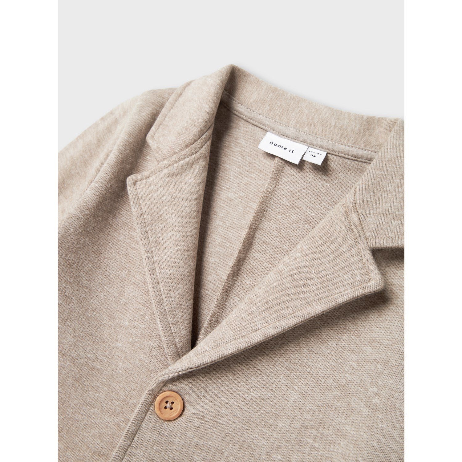 Oppdag vår elegante "Name It Pure Cashmere Follow Sweat Blazer" – en stilfylt og komfortabel tilføyelse til ditt barns garderobe. Denne jerseyblazeren er laget av ubørstet svettestoff som gir en myk og behagelig følelse, takket være den glatte overflaten og de løkkene på innsiden. Med sin klassiske skjortekrage og lange ermer tilbyr den både funksjonellitet og stil. Blazeren kommer i en normal passform med praktisk knappefeste, gjør den ideell for alt fra skolearrangementer til familiefester. Denne moderne og slitesterke blazeren er ikke bare flott å se på, men også enkel å vedlikeholde, sikrer at ditt barn ser velkledd ut enhver anledning.