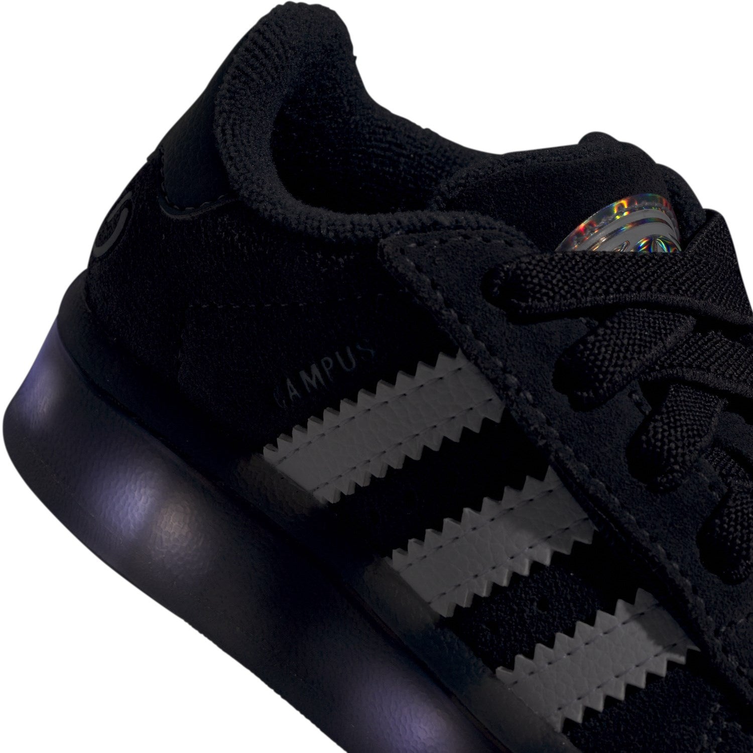 - Ekstra: Trefoil-merke på hælfliken, Campus-tekst på sidesiden, adidas-merke på innersålen, taggete tre striper, tungemerke med Campus-logoen og LED-lyssignaturen vår.