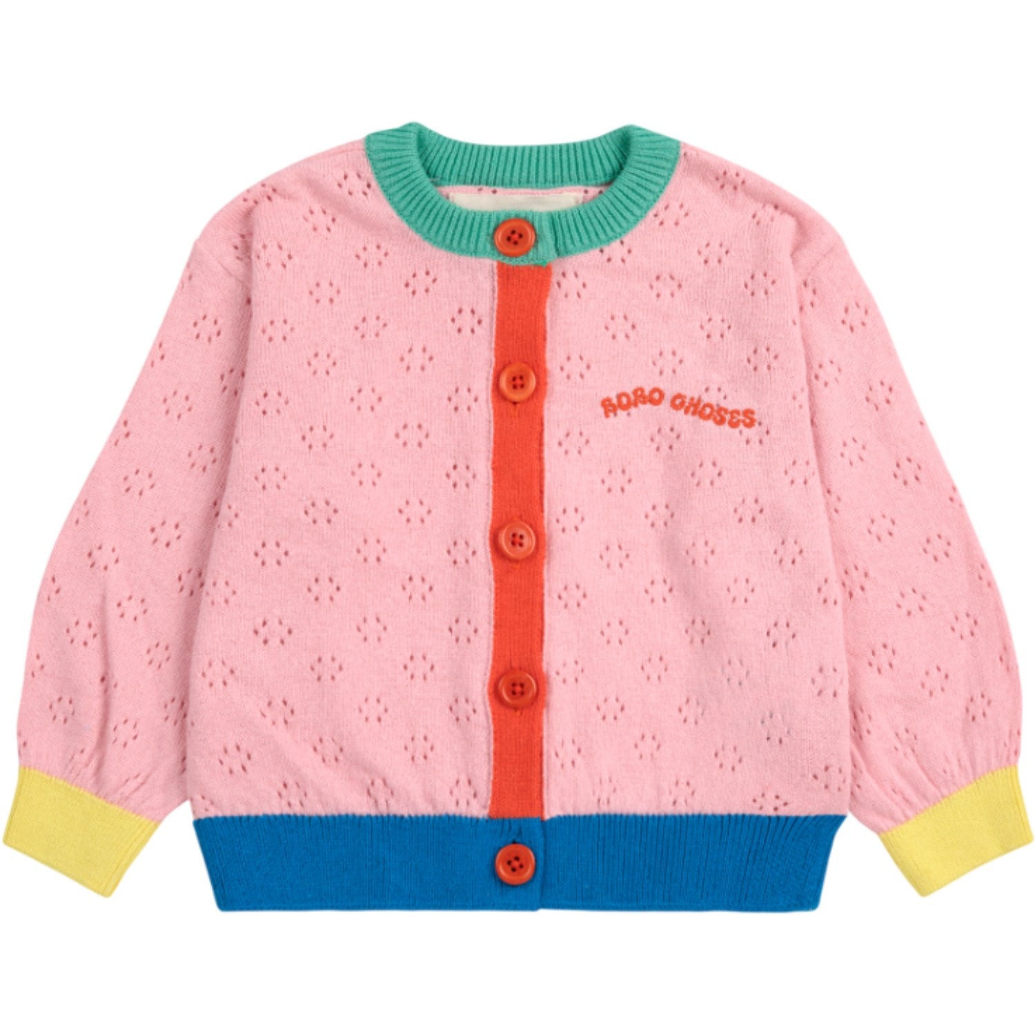 Bobo Choses Lys Pink Farge Block Open Work Cardigan
