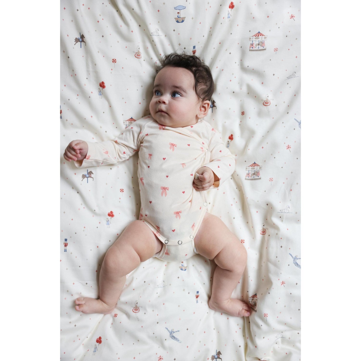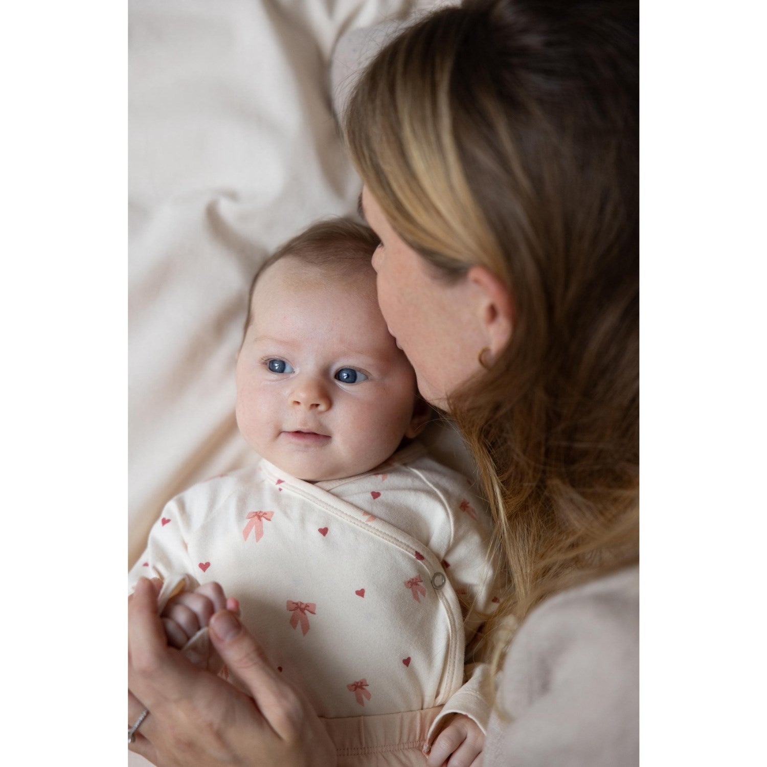Oppdag den sjarmerende og praktiske Cam Cam Copenhagen Bows Omslags Body Milla, perfekt for ditt barns komfort og stil. Denne bodyen, laget av 100% økologisk bomull, er ultra-mild mot babyens sarte hud og gir utmerket komfort hele dagen. Den unike omslagsdesignen gjør klesbytte lekende lett, åpnes helt på en side, noe som er ideelt for de minste barna. Med sitt søte Bows-mønster og delikate farger, passer denne bodyen perfekt til både hverdagsbruk og spesielle anledninger. Et utmerket valg for en gjennomtenkt babyshower- eller barselgave, denne bodyen kombinerer funksjonalitet med nydelig stil.