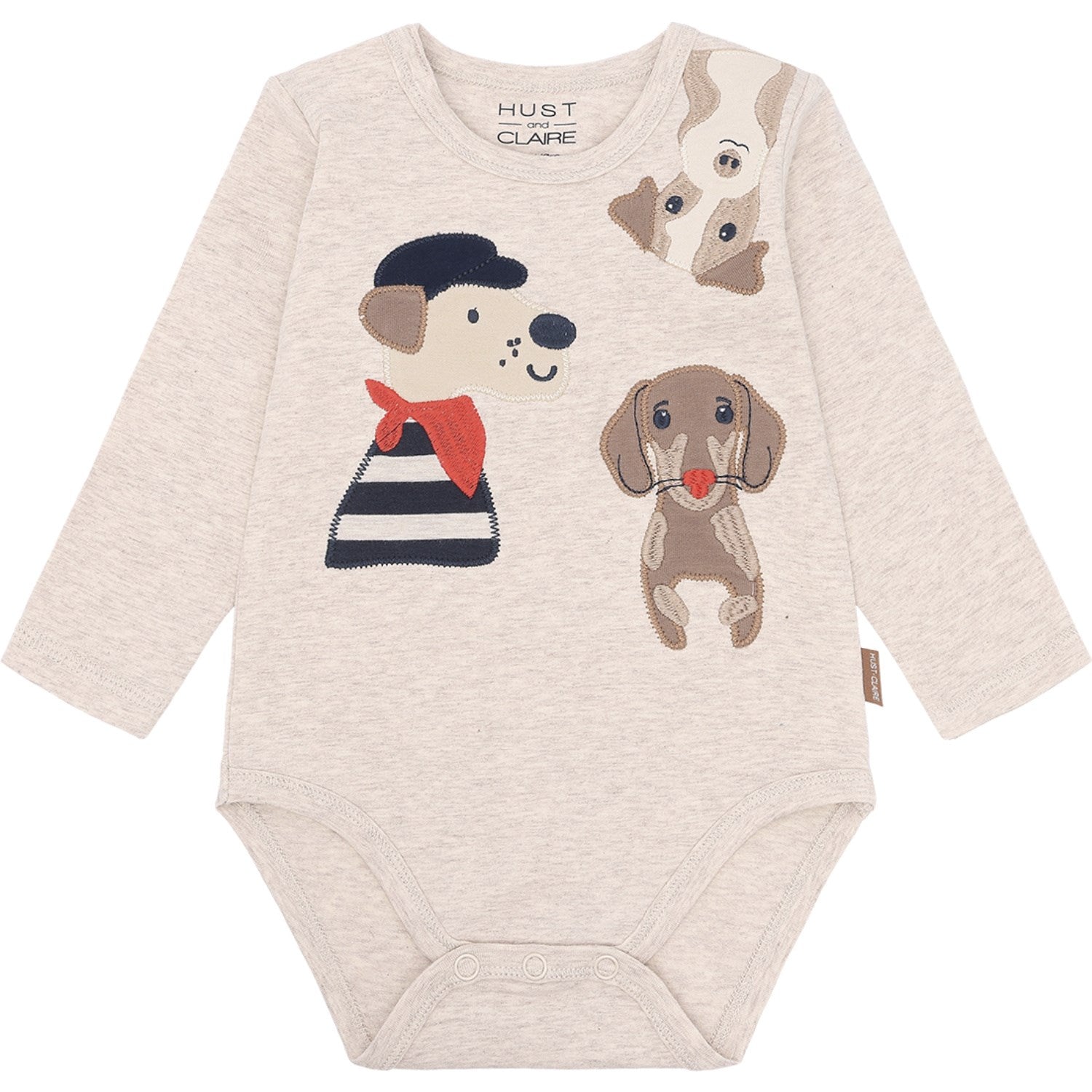 Lek og komfort kombineres i denne herlige langermede Hust & Claire Wheat Melange Buster-bodystockingen, perfekt for ditt barns garderobe. Den er laget av elastisk bomull som gir en myk og behagelig følelse mot huden. Med et sjarmerende hundemotiv fremme, legger denne bodyen til et muntert preg på hverdagsantrekket.