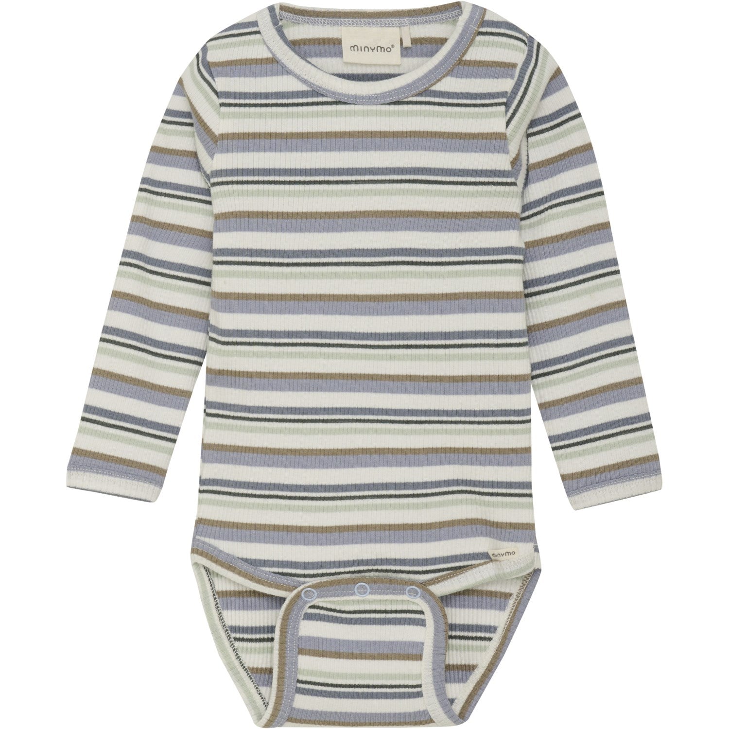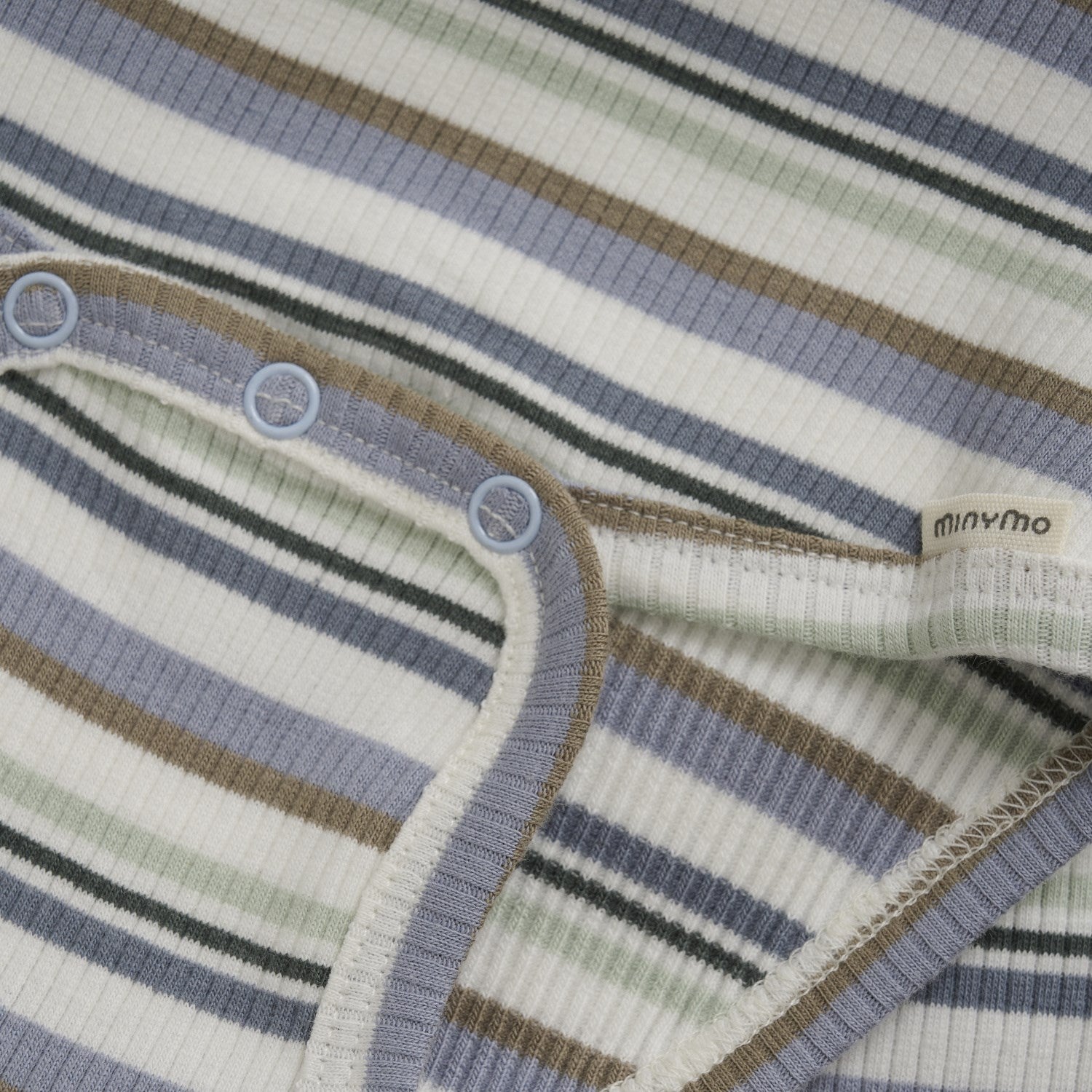 Oppdag den behagelige Minymo Blue Fog Body Rib, laget av mykt materiale som er skånsomt mot barnets hud. Med sitt stilige design i duse blåtoner og ribbestruktur, tilbyr denne bodyen en perfekt passform og enestående komfort. Den er slitesterk og enkel å vedlikeholde, ideell for både lek og hvile. Passer utmerket til hverdagsbruk.