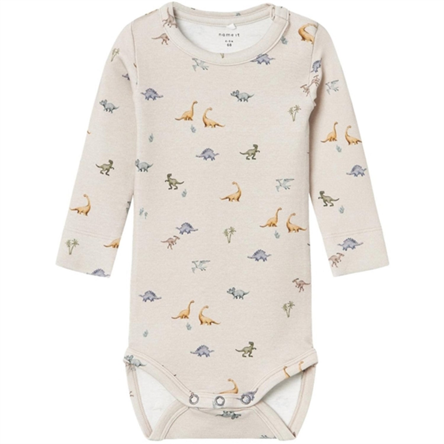 Gi barnets antrekk et løft med "Nacreous Cloud Faurus Body", en stilfull og komfortabel body som passer perfekt til ethvert barns garderobe. Denne bodyen byr på herlig mykhet i ribbestrikket material, kjent for sin fleksible passform og vertikale, stripete mønster som ikke bare gir utmerket komfort, men også et visuelt tiltalende design. De lange ermene og rund halsen sikrer at barnet holder seg varmt og komfortabelt, mens trykknappfestet gjør av- og påkledning enkel og smertefri.