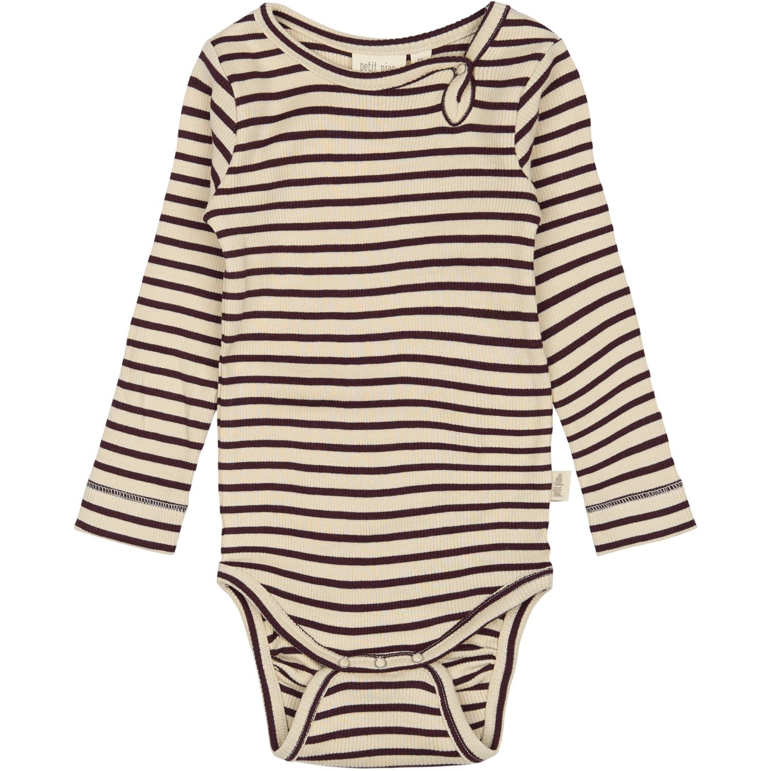 Petit Piao Dark Grape/off White Body L/S Modal Striped - 62 er restordre og vil bli sendt så snart det er tilbake på lager.