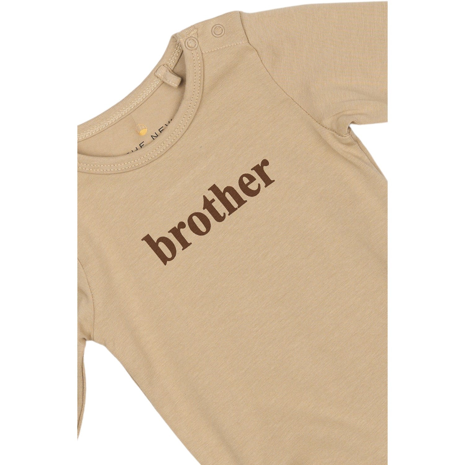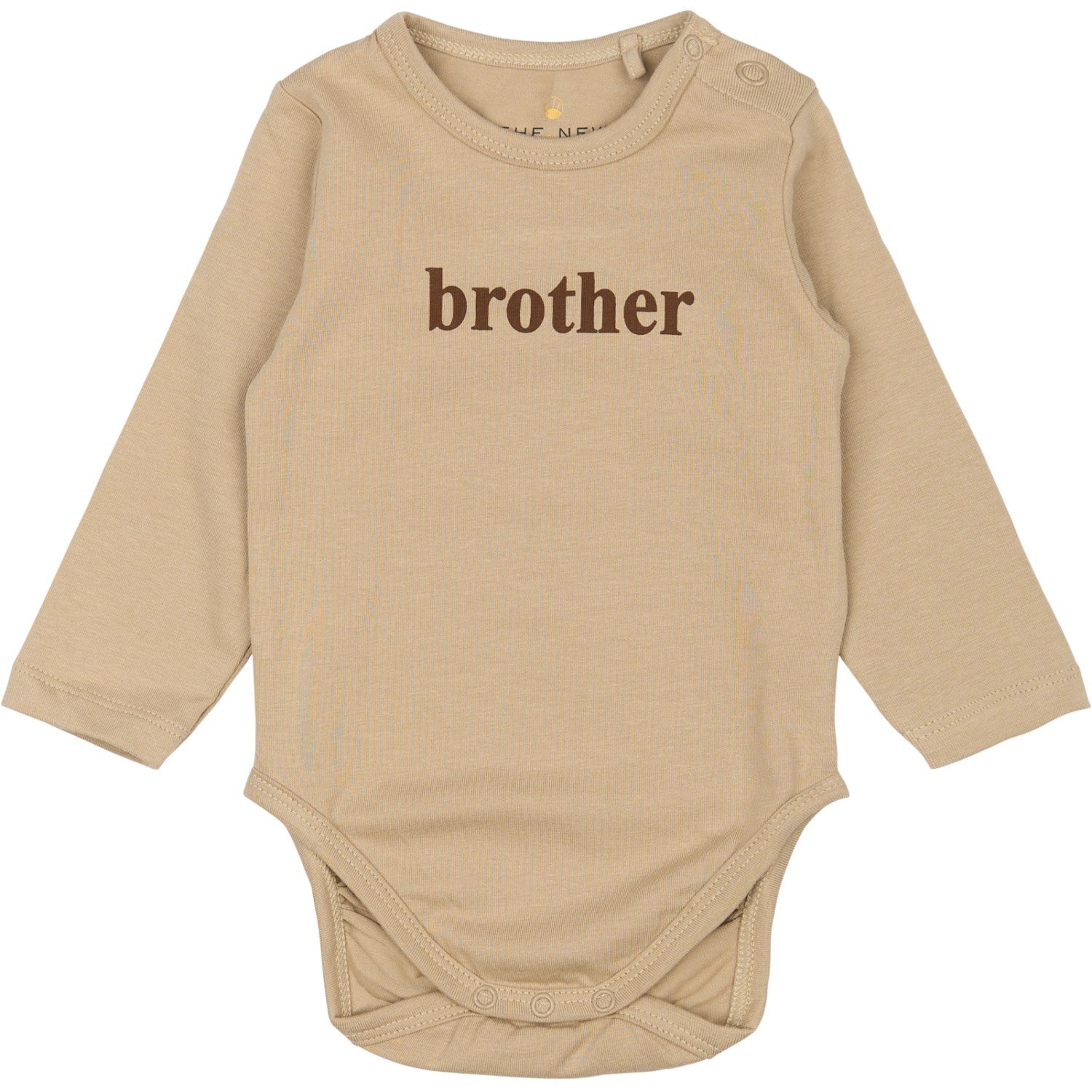 Gjør hverdagen litt søtere for de små med denne sjarmerende langermede babybodyen fra THE NEW siblings. I en delikat lys sandfarge prydet med elegant brun tekst som sier "bror", er denne bodyen et nydelig valg for din lille gutt. Den matchende søsterbodyen gjør dette til det perfekte settet for søsken.
