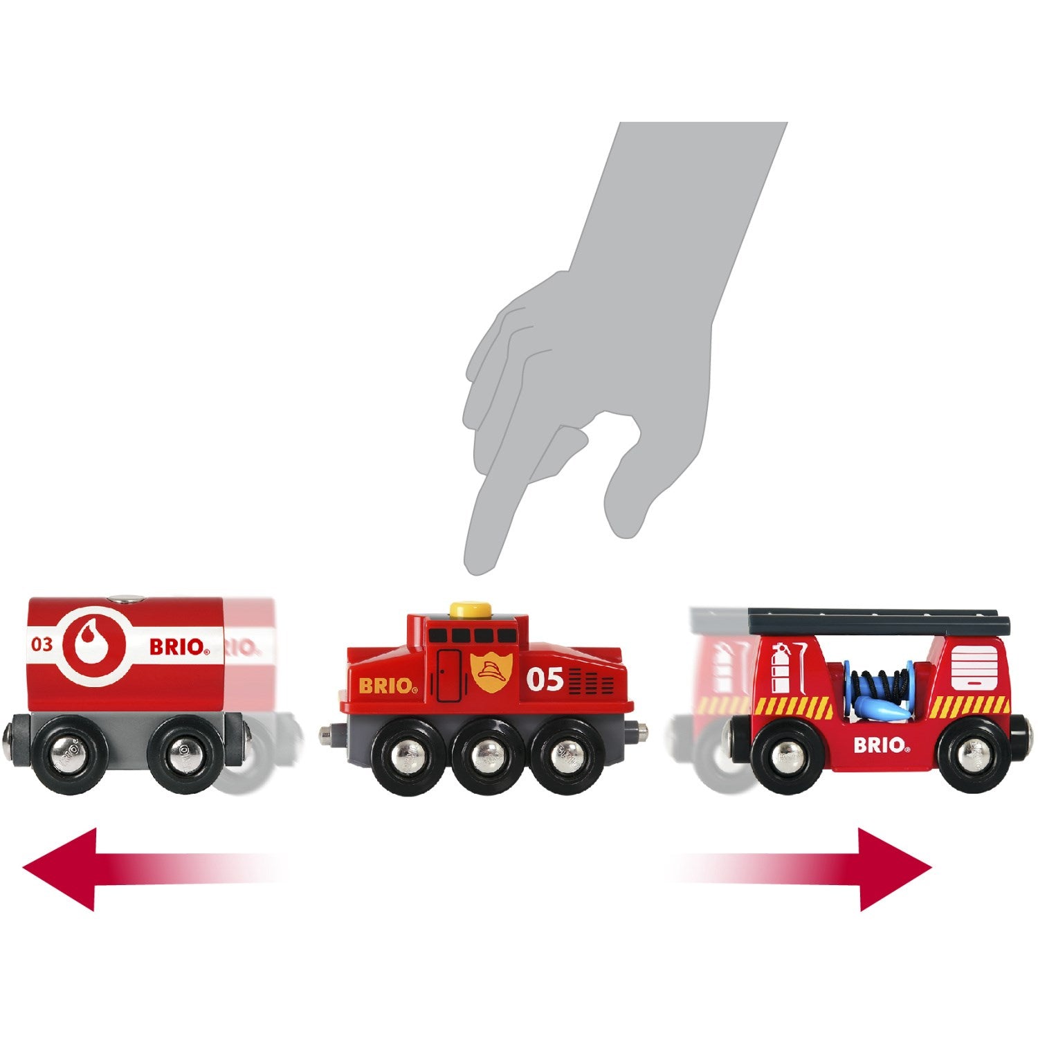 Gi barnet et spennende eventyr med BRIO® 33844 Redningstog! Trykk bare på knappen for å frigjøre vognen og skynd deg til unnsetning. Dette robuste toget, perfekt for barn fra 3 år, inneholder en brannslange og en tankvogn som virkelig kan slukke branner. Det stimulerer fantasien, utvikler fine motoriske ferdigheter og er enkelt å bruke og oppbevare. Med sitt engasjerende og interaktive design er det sikker moro som også lærer bort verdien av heltemot.