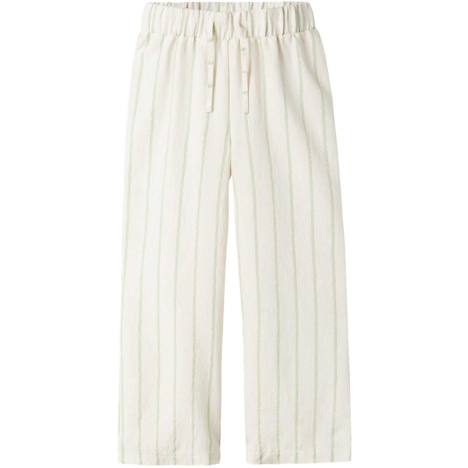 Gi barnets hverdagsantrekk et løft med Name It Arcadian Green Fizteks Wide Bukser. Disse buksene kombinerer strålende komfort og trendy design, perfekt for lek og moro under varmere dager. Det vevde materialet er dekorert med et innbydende kryssmønster og har en lett teksturert overflate som både ser flott ut og føles behagelig mot huden.
