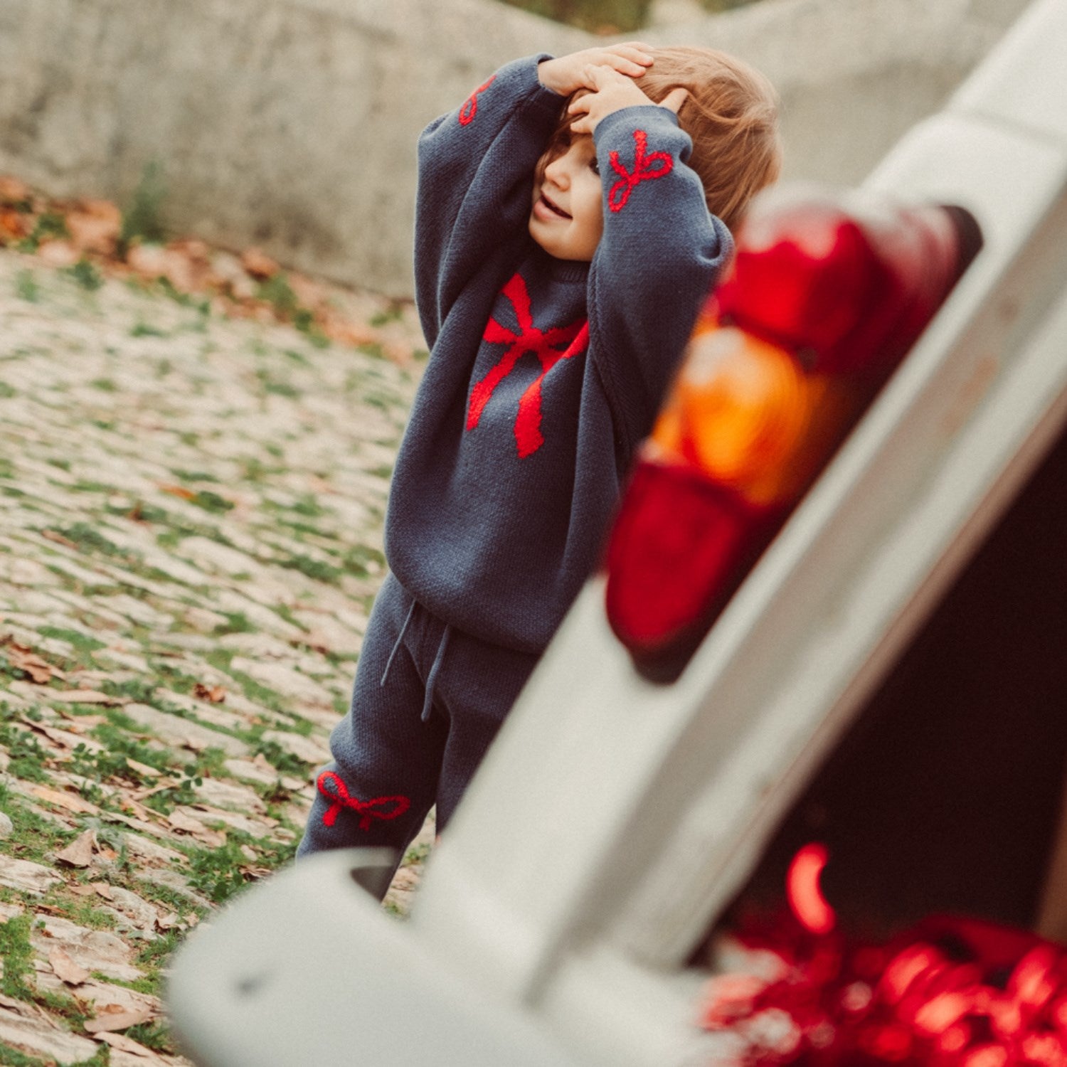 Oppdag våre sjarmerende strikkede That's Mine Key Blue Norma bukser, perfekte for lekne barn. Disse buksene har søte sløyfedetaljer ved knærne, en behagelig elastisk midje og en praktisk justerbar slipssnor som sikrer god passform. Med sin behagelige strikk og stilige design, er buksene ikke bare komfortable, men også moteriktige, og de vil holde seg flotte selv etter mange vask. Ideelle for både hverdagsbruk og finere anledninger.