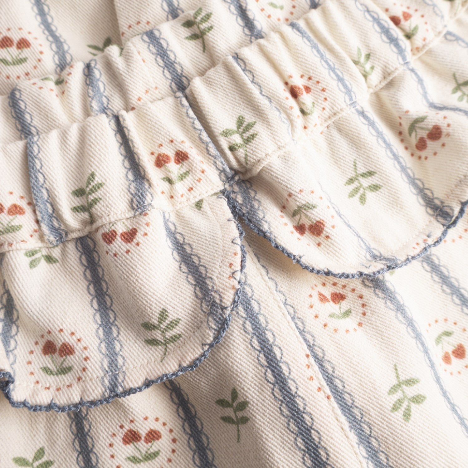 Gled ditt barn med de nydelige "That's Mine Love Berry Freya"-buksene, designet med sjarmerende små volanger i livet og delikate heklekanter for en stilfull touch. De har strikk nederst i falden for perfekt passform og en justerbar midje som sikrer komfort hele dagen. Disse buksene er ikke bare komfortable og funksjonelle, men også utrolig søte med sitt unike design. Ideelle for hverdagsbruk eller spesielle anledninger, vil disse buksene være et favorittvalg i enhver barnegarderobe.
