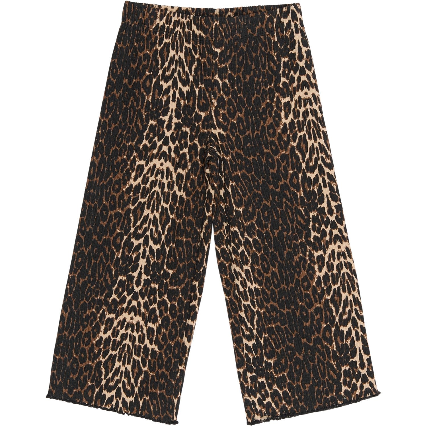 Designet med et oppsiktsvekkende dyretrykk, setter disse buksene en leken vri på barnegarderoben. Den ribbestrikkede teksturen sammen med den løse passformen og vide ben gir en unik stil som er både trendy og praktisk. Den elastiske linningen sikrer en god passform som tilpasser seg etter barnets bevegelse, noe som er optimalt for lek og rørelse.