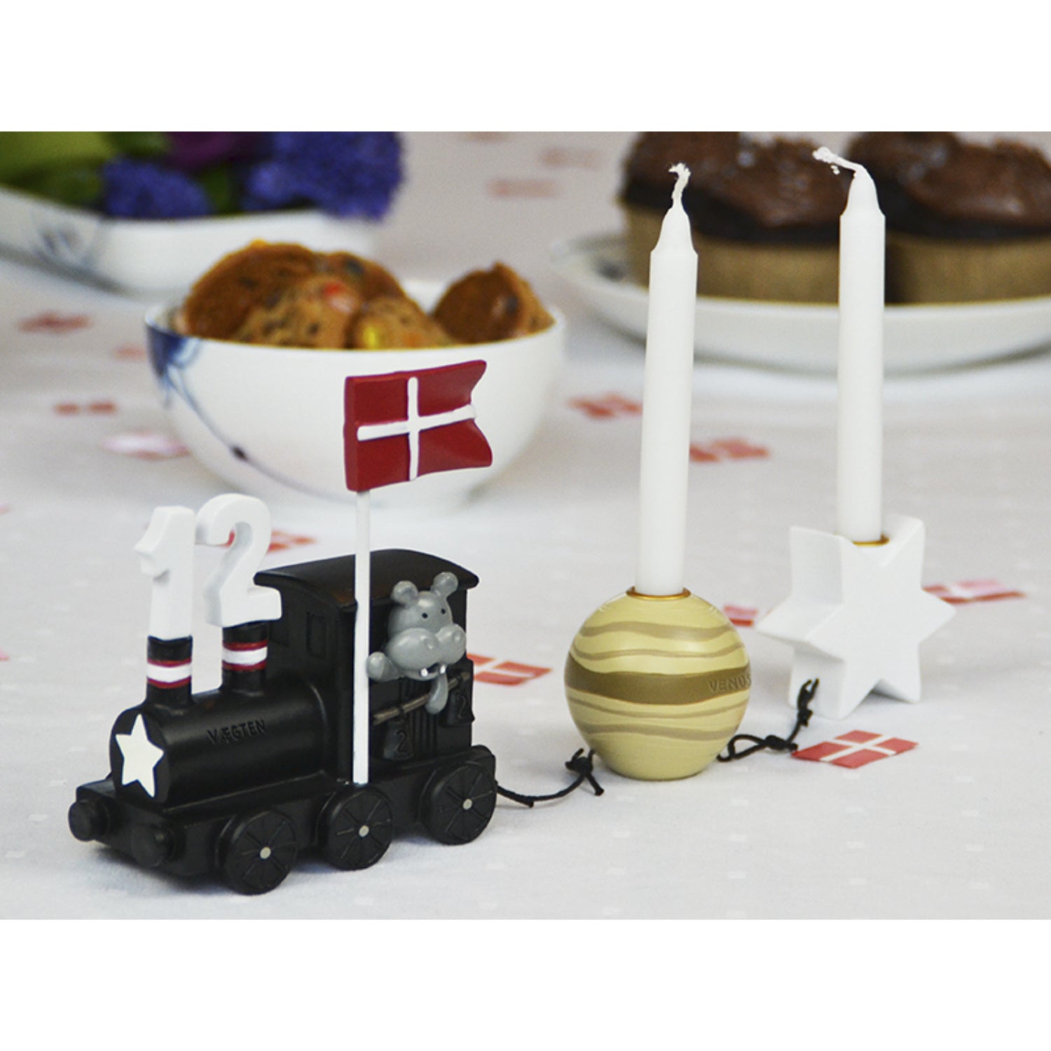 Gi barnets bursdagsfeiring en magisk touch med Kids by Friis Vægten Bursdagstog! Dette sjarmerende toget kommer med fargerike flagg og tall fra 0 til 10, noe som gjør det til en perfekt dekorasjon år etter år. Toget er laget av holdbare materialer for å sikre langvarig bruk og enkel vedlikehold. Både underholdende og stimulerende, det vekker barnas nysgjerrighet og lærelyst gjennom lek. Ideal for oppbevaring og organisering av små gjenstander, kombinerer det funksjonalitet med moro på en sikker og komfortabel måte. Materialer: Polyresin