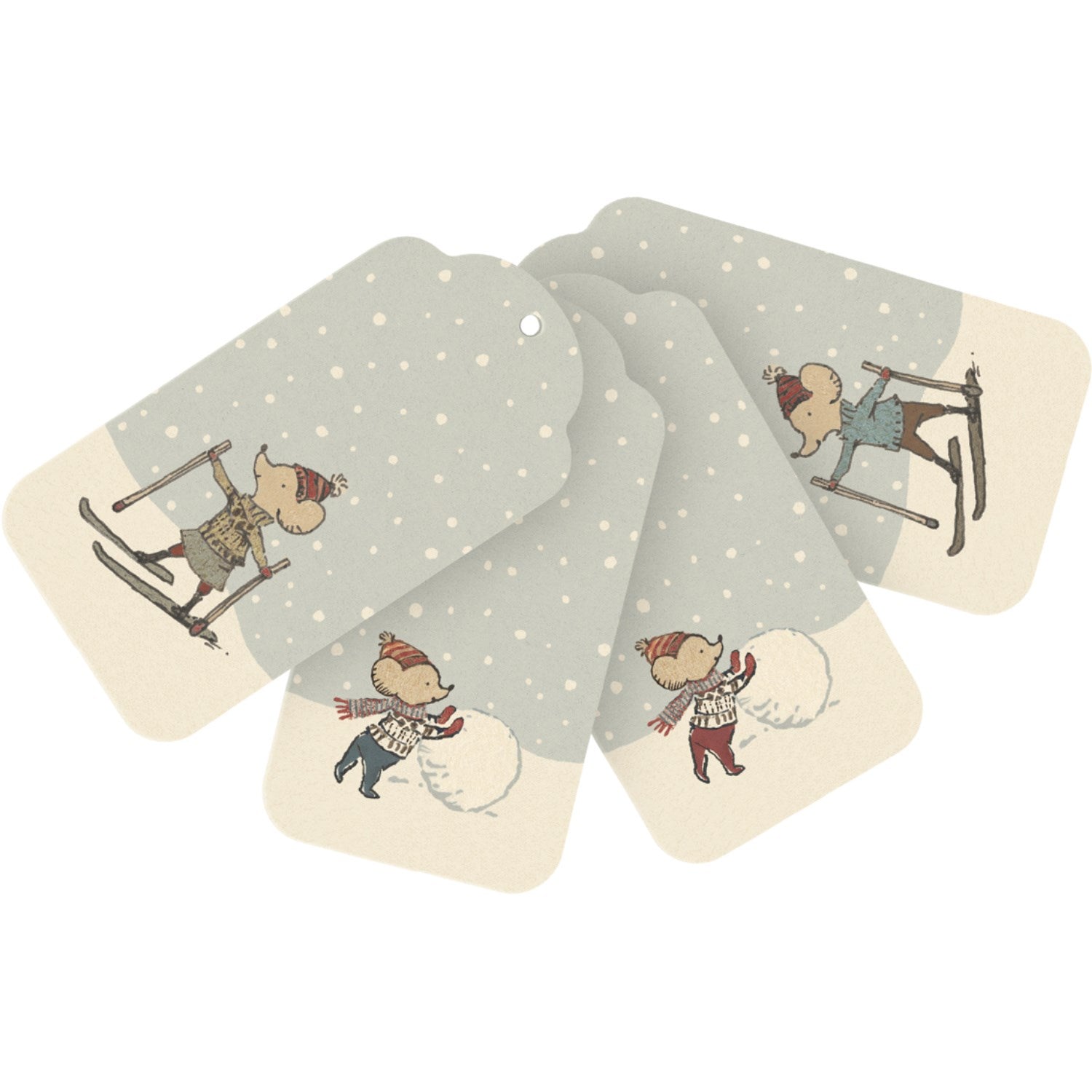 Gjør julegavene ekstra spesielle med Maileg Julegavemærker! Disse sjarmerende gavelappene er utsmykket med nydelige vintertegninger og gir plass på baksiden til en personlig hilsen. Hver pakke inneholder 12 kort i to forskjellige design, perfekt for å organisere og personliggjøre dine gaveinnpakninger. En enkel måte å legge til et magisk preg på dine julegaver. Materialer: Papir