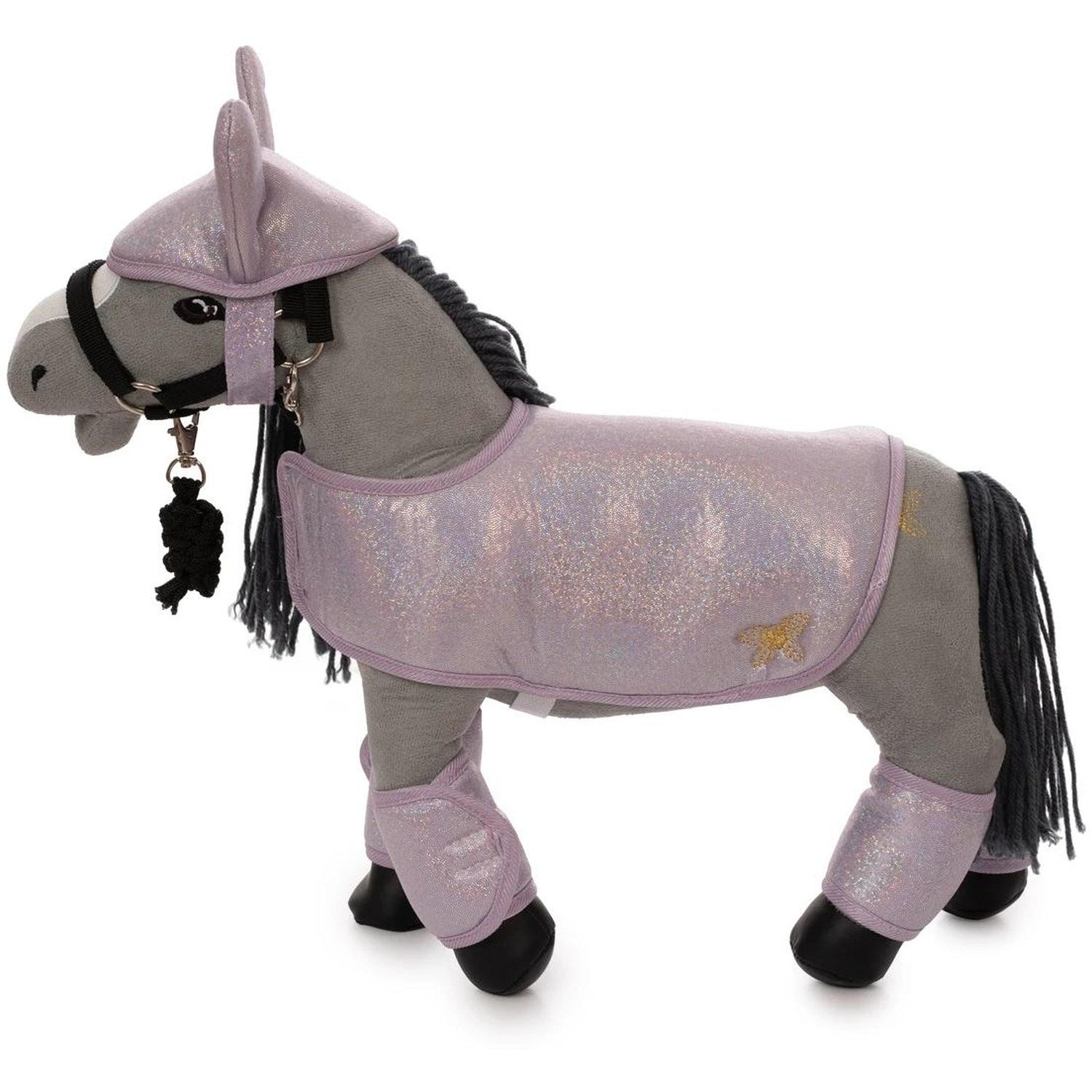 Gi barnets lekehest et magisk preg med det stilfulle tilbehørsettet fra byAstrup i skinnende lilla glitter! Dette settet er ikke bare vakkert, men også laget for å forsterke lekeopplevelsen med sin praktiske design. Det komfortable teppet og den myke sjabraken sørger for at hesten alltid ser bra ut og føles behagelig, perfekt for langvarig lek og eventyr. De fire elegante gamasjene tilfører stil samtidig som de beskytter hestens "ben". Ideelt for å øke barnets kreativitet og tilføre et snev av glamour til hver lekestund, enten innendørs eller utendørs. Det er lett å bruke og lagre, noe som gjør det til en favoritt for både foreldre og barn.