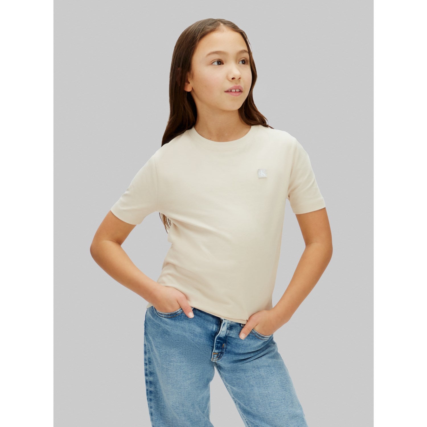 Calvin Klein Oatmeal Mono Mini Badge Reg T-Shirt - 10 år er restordre og vil bli sendt så snart det er tilbake på lager.