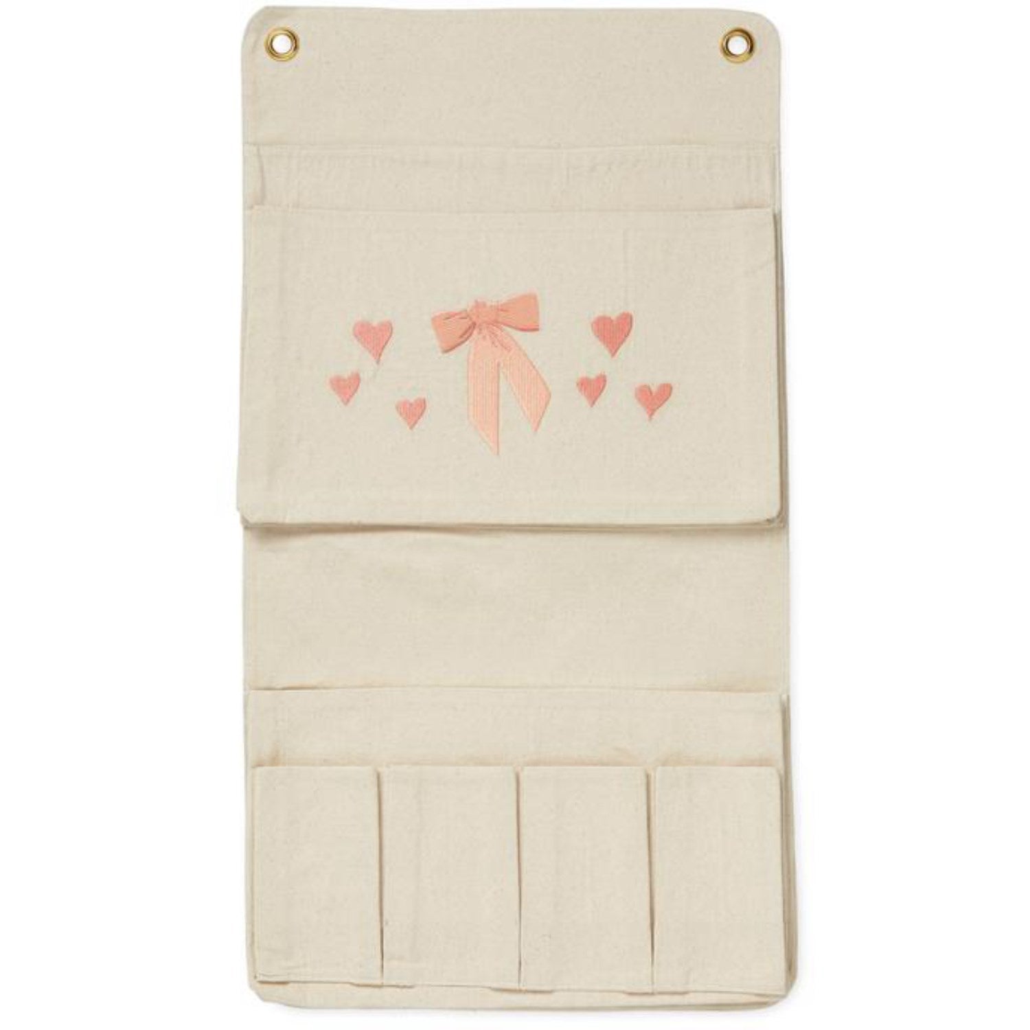 Med Cam Cam Copenhagen Bows Vægopbevaring holder du enkelt orden på barnerommet eller i stellerommet. Denne smarte oppbevaringsløsningen er laget av økologisk bomull i holdbar lerretskvalitet og er utstyrt med flere funksjonelle lommer. Perfekt for å oppbevare alt fra bleier til små leker og tilpasset for å maksimere både sikkerhet og estetikk. Det sjarmerende Bows-designet og de rolige fargene tilfører et stilrent og lærerikt element til rommet som stimulerer barnets sanser. Denne vegghengte oppbevaringsposen er ikke bare praktisk, men også en ideell gave til forventningsfulle foreldre.