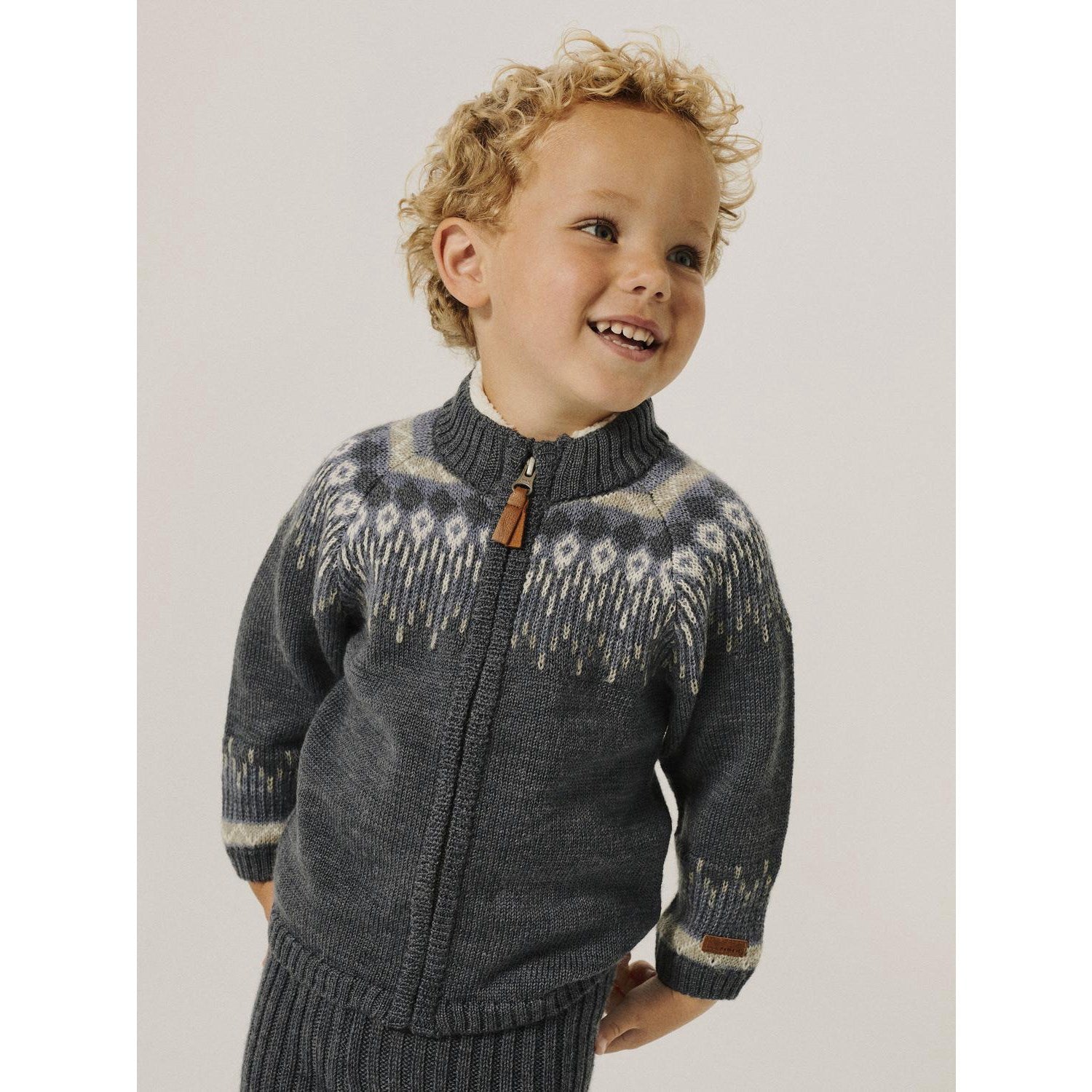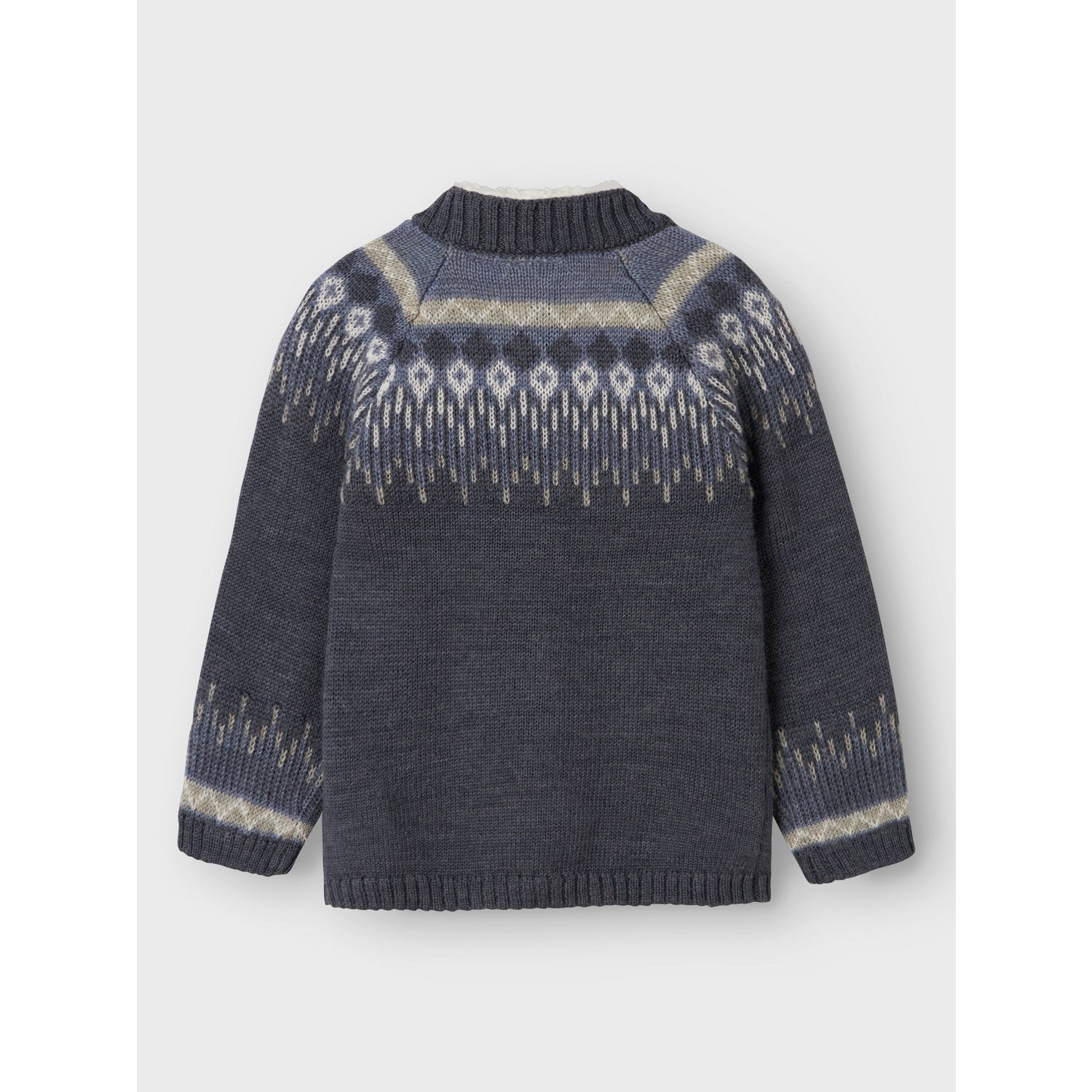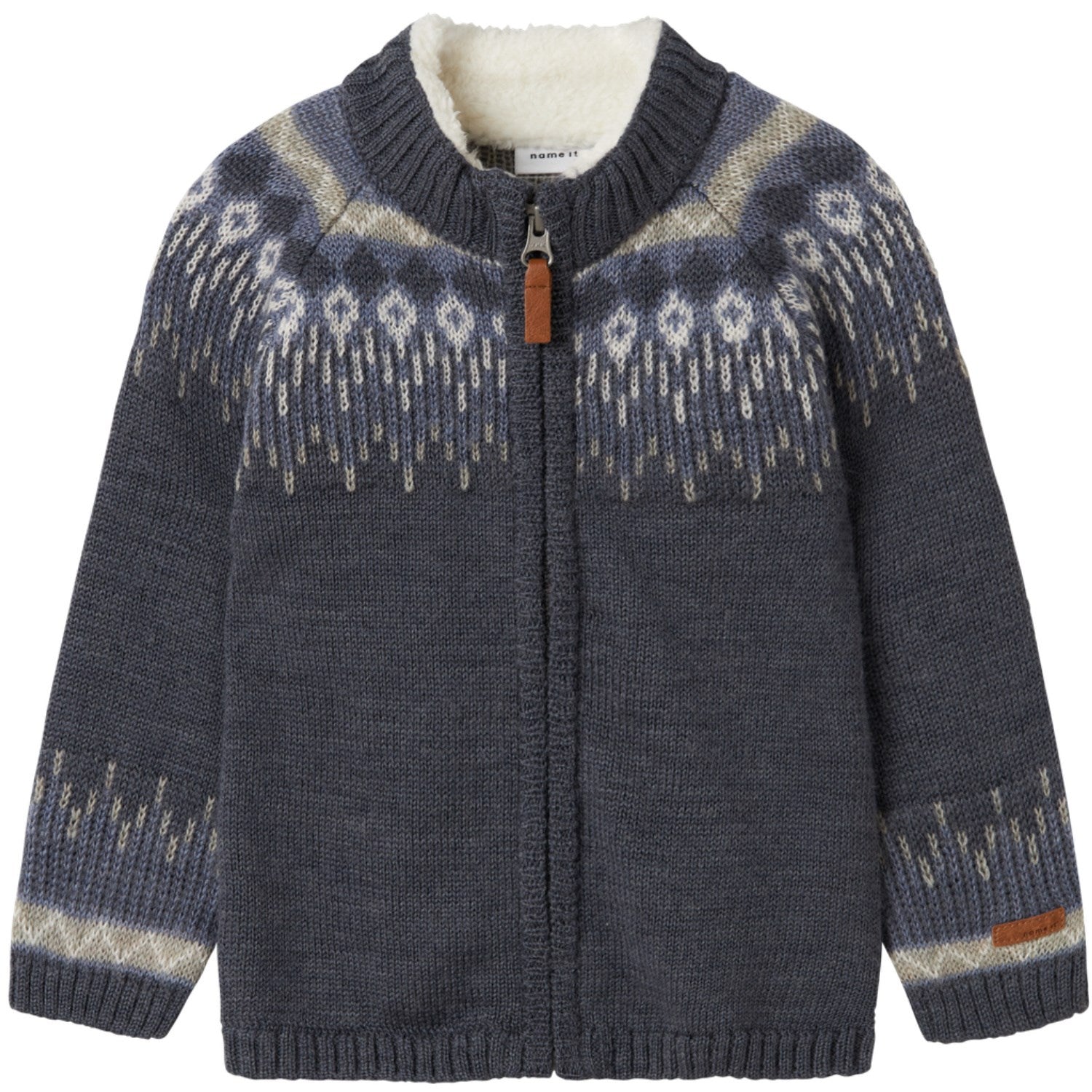 Gjør barnets kleskolleksjon komplett med denne elegante og behagelige strikkede cardiganen fra Name It. Designet i en sjarmerende ombreblå farge med et intrikat Jacquardmønster, tilbyr denne cardiganen både stil og varme. Med sin myke ullsammensetning er den ideell for kjølige dager. Den klassiske turtle neck og lange ermer gir ekstra dekning, mens glidelåsen sikrer enkel påkledning. Med en normal passform er den perfekt for daglig bruk og passer harmonisk med varierte antrekk. En smart investering for økt komfort og varig stil.