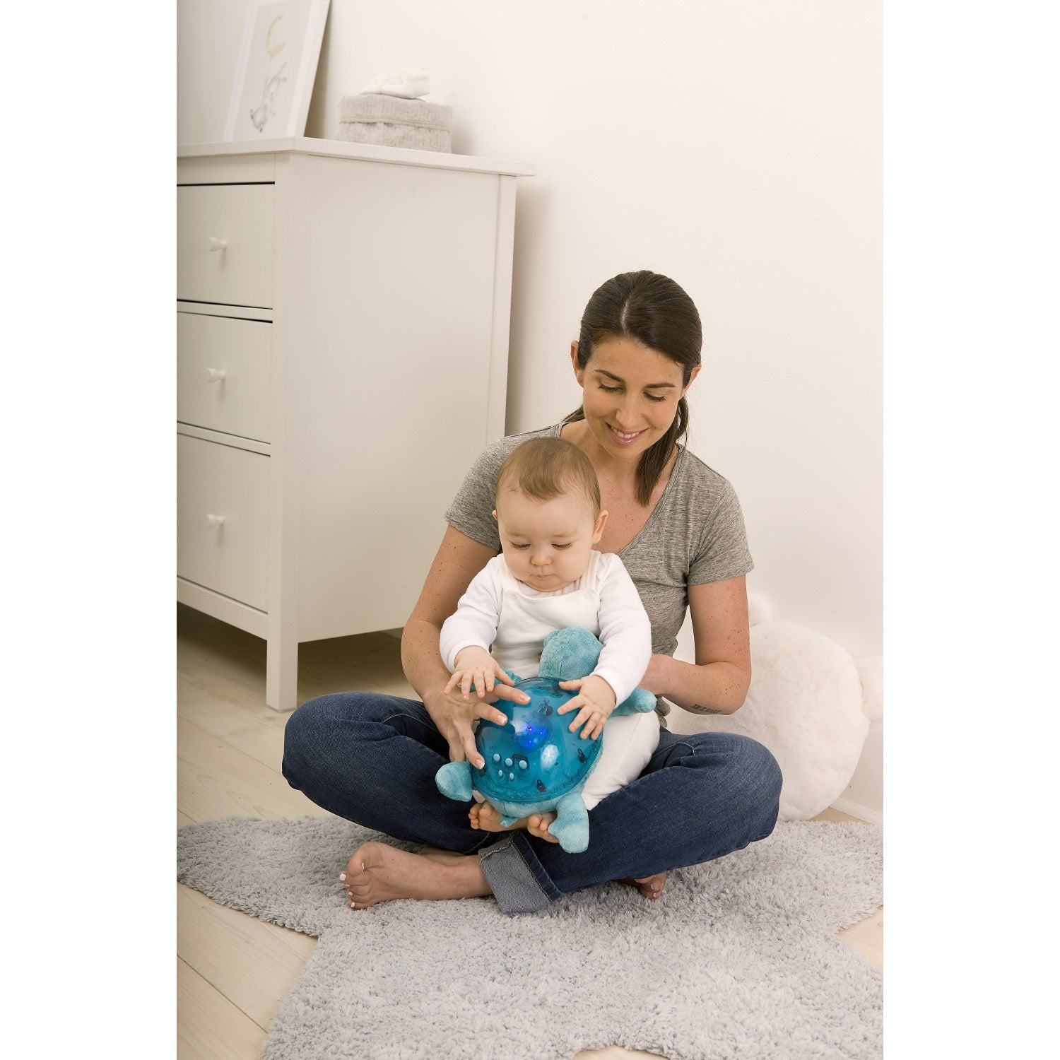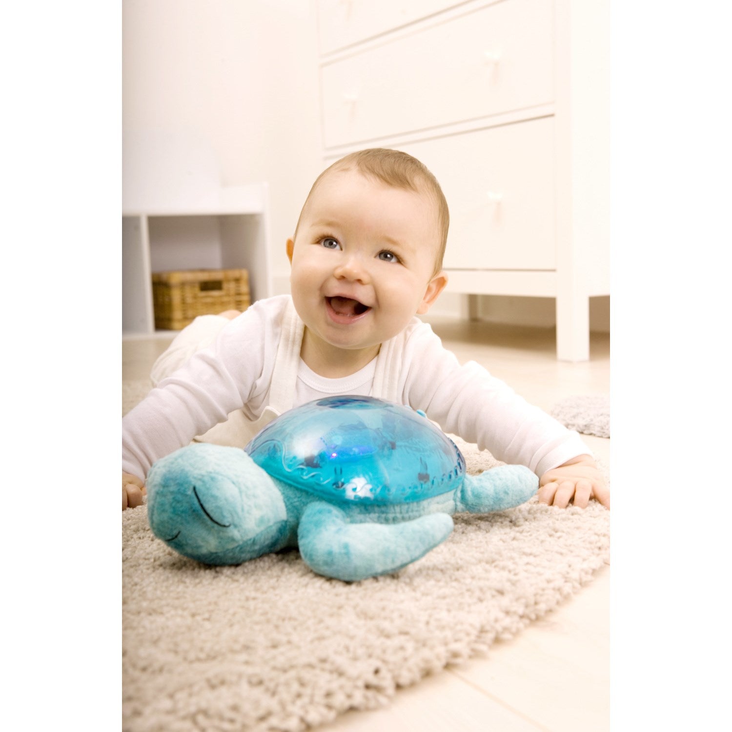 Oppdag tryggheten og magien av Cloud B Blå Tranquil Turtle – Rechargeable, en nødvendighet for ethvert barnerom. Denne sjarmerende nattlampen er designet for å berolige barn som føler seg utrygge i mørket, og kan også brukes som en koselig bamse på dagtid. Tranquil Turtle skiller seg ut med sin unike undervannseffekt som projiseres på rommet, skapende en magisk atmosfære av bevegelige bølger.