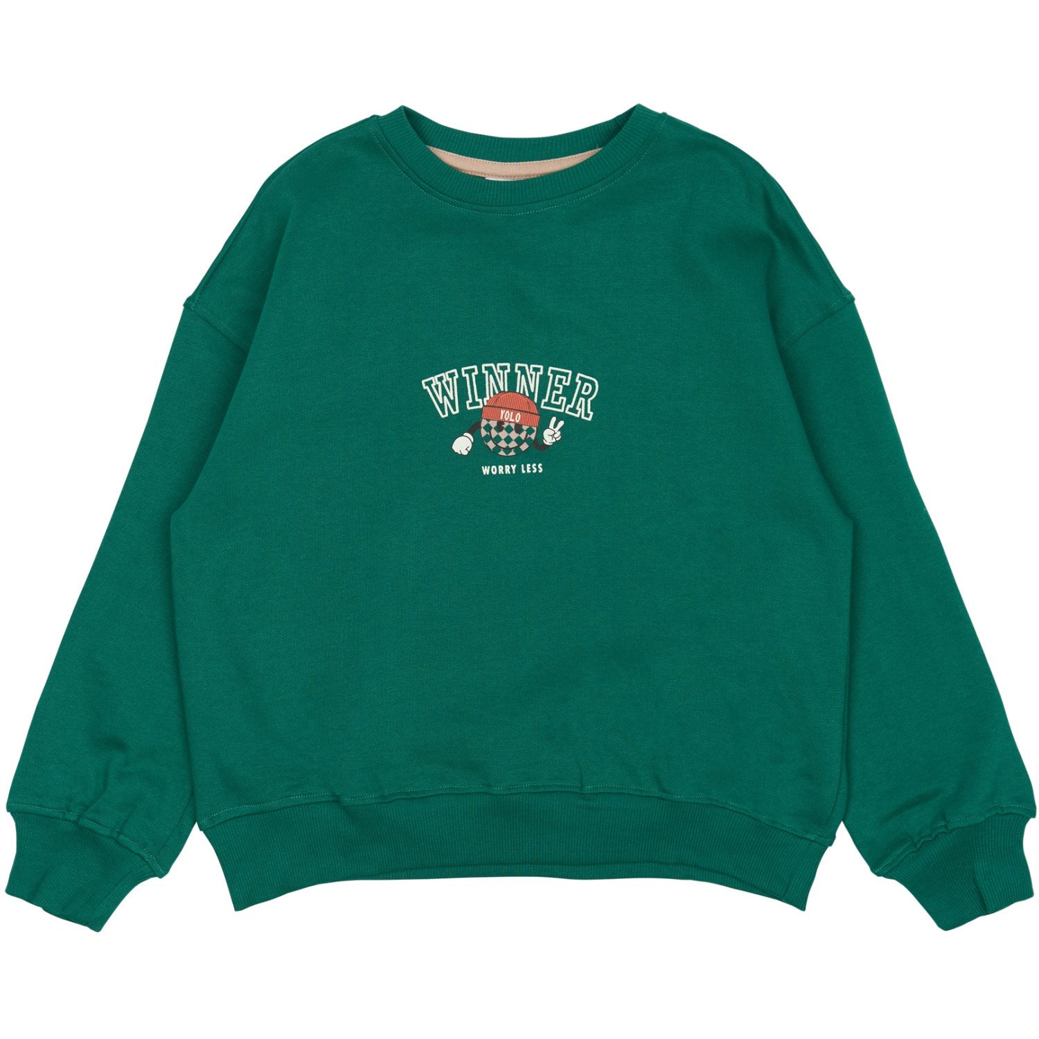 La barnet ditt uttrykke seg med The New Alpine Green Paul Oversize Collegegenser! Denne collegegenseren kombinerer komfort med et unikt design, og er ideell for enhver dag full av lek og moro. Genseren er laget med GOTS-sertifisert organisk bomull, som forsikrer bærekraftig og miljøvennlig produksjon. Utstyrt med en stor brysom lomme dekorert med et smilende ansikt og "YOLO"-teksten, samt "Vinner" over lommen, legger denne plagg til et lekent preg til barnas garderobe. På baksiden finner du et forstørret uttrykk "bekymre deg mindre" som fremmer en positiv og bekymringsløs holdning. Den oversize passformen garanterer utmerket komfort og frihet i bevegelser, perfekt for lange skoledager eller helgeturer. Lettstelt og holdbar, denne genseren er et praktisk valg for både foreldre og barn. Gled deg over hvordan ditt barn skinner i denne sjarmerende og funksjonelle collegegenseren, perfekt for alle anledninger!