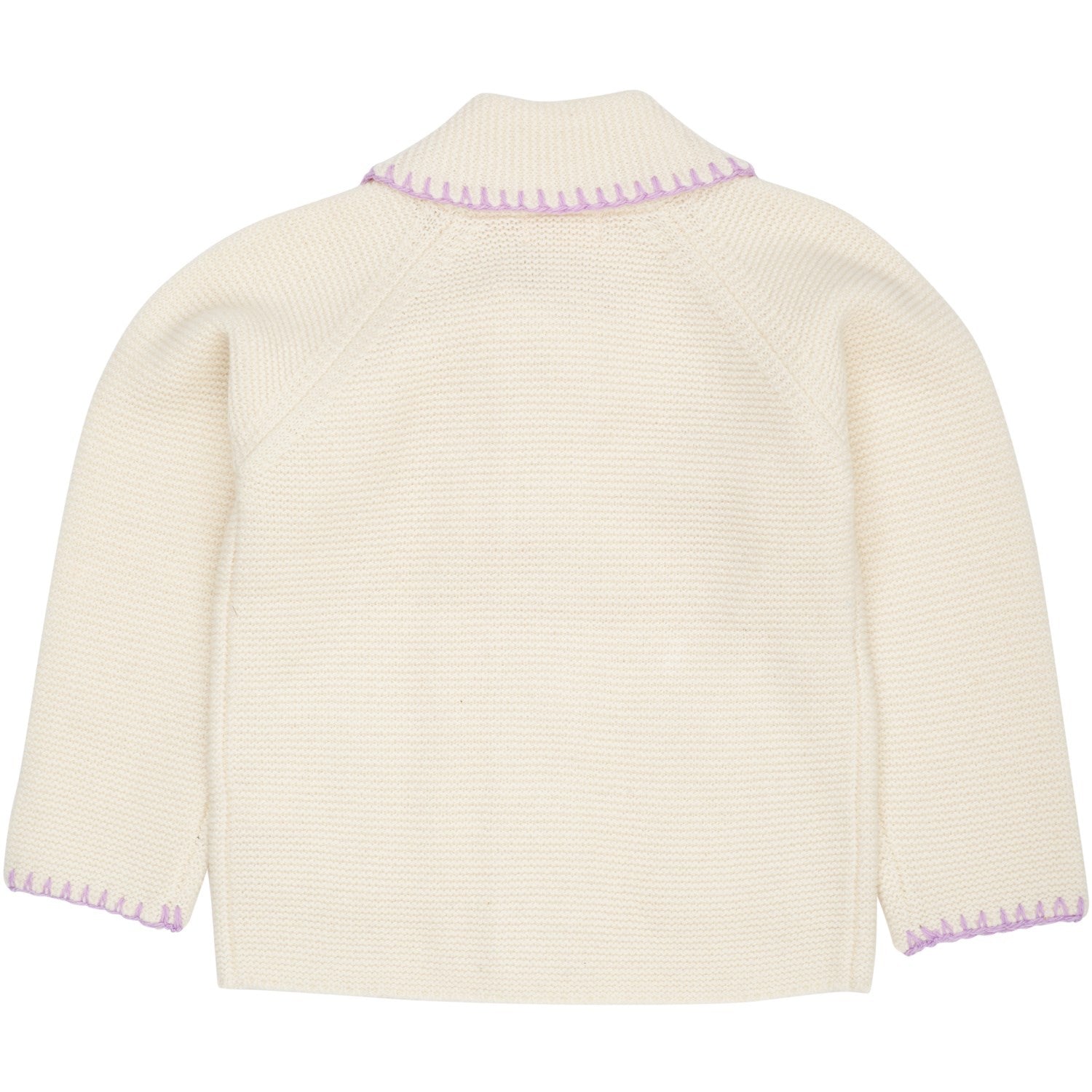 COPENHAGEN COLORS Cream/Lavender Comb Lambswool Cardigan W. Halsbånd