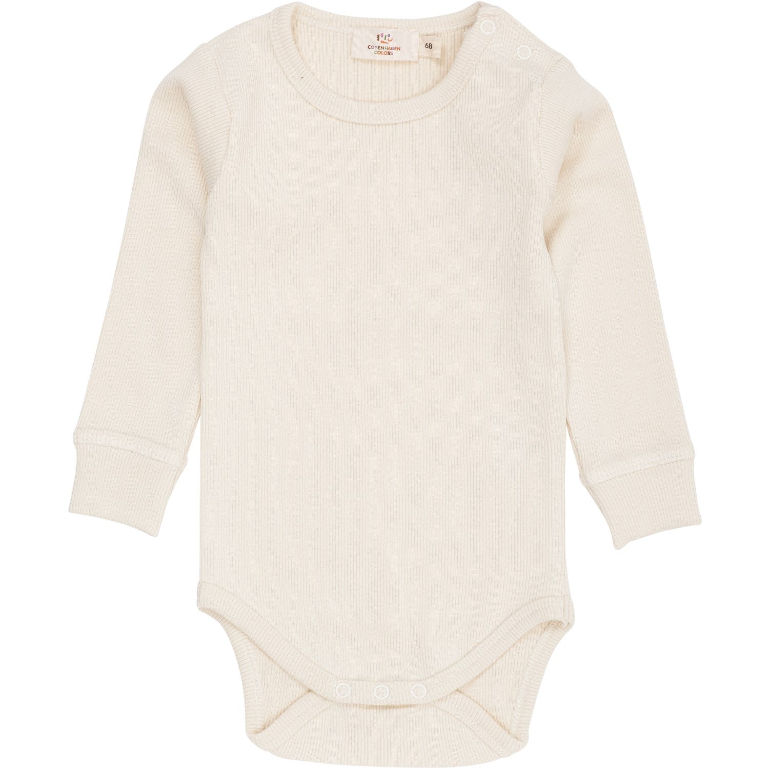 Oppdag den myke, ribbestrikkede bodyen fra COPENHAGEN COLORS, perfekt for din lille. Laget med en behagelig blanding av 47 % økologisk bomull, 47 % modal og 6 % elastan, sikrer denne bodyen komfort og holdbarhet. De lange ermene og den runde halsen tilbyr en klassisk stil, mens trykknappene mellom bena gjør den enkel å ta av og på. Et utmerket valg for hverdagsbruk, denne bodyen kombinerer funksjonalitet med en kremfarget eleganse som passer til enhver tilstelning.