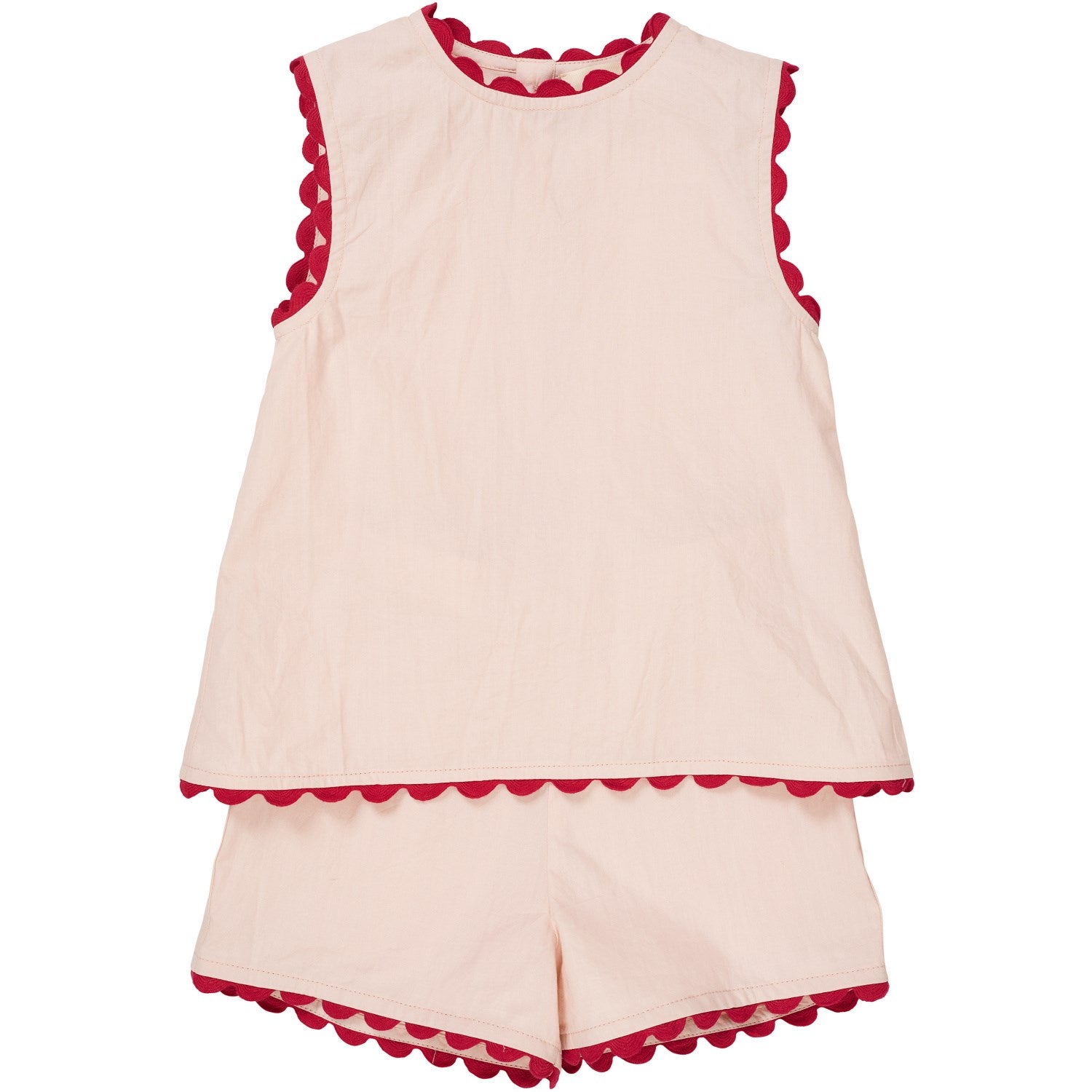 Oppdag Copenhagen Colors' Dusty Rose Comb. Poplin Deco Summer Sett, et sjarmerende valg for de små. Laget av 100 % økologisk bomull, er dette settet ikke bare miljøvennlig, men også ideelt for varme dager med sitt lette og pustende stoff. Settet består av en søt matchende bluse og shorts som sikrer en komfortabel passform, perfekt tilpasset aktive barn. Dens delikate farger og mønster gjør det egnet for både daglige eventyr og spesielle anledninger. Lettstelt og praktisk, dette settet er en favoritt for både barn og foreldre.