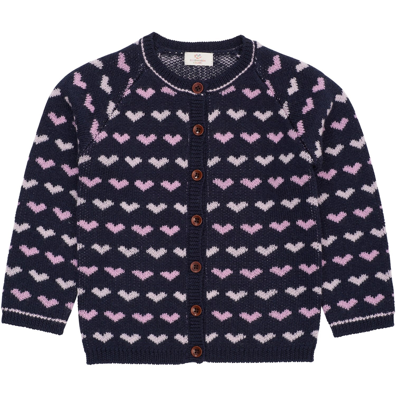 Oppdag vår sjarmerende COPENHAGEN COLORS Navy/Bubblegum Comb Merino Heart Cardigan. Denne cardiganen er perfekt for de små, med lange ermer og en klassisk rund hals. Laget av 100% myk merinoull, er den utsmykket med søte strikkede hjerter. Det behagelige snittet og den herlige kombinasjonen av marineblå og bubblegum-rosa gjør den til et stilfullt valg som er like praktisk som den er pen. Lett å ta vare på, gir denne cardiganen komfort og varme på kjøligere dager.
