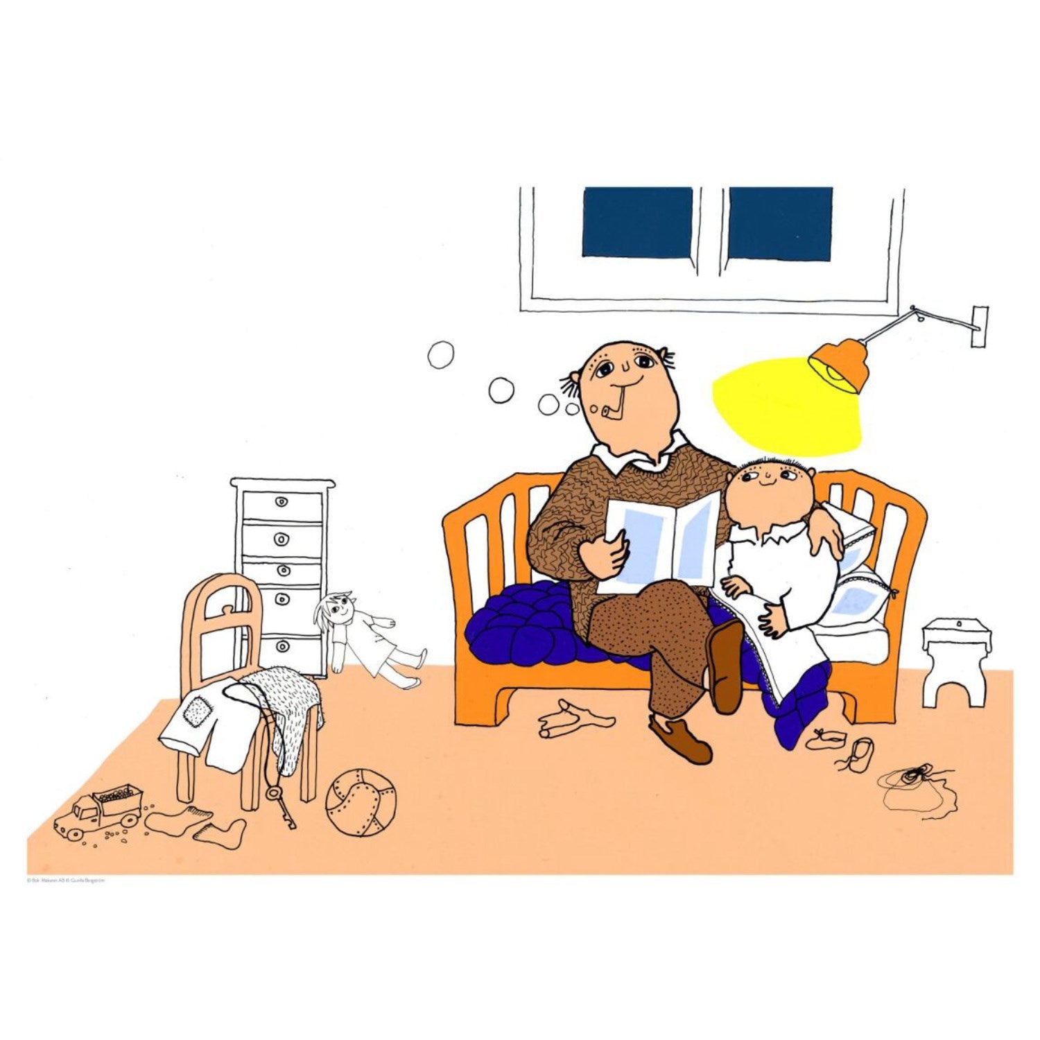 Poster & Frame Alfons Åberg - Godnat Alfons - Far Læser Godnathistorie er restordre og vil bli sendt så snart det er tilbake på lager.