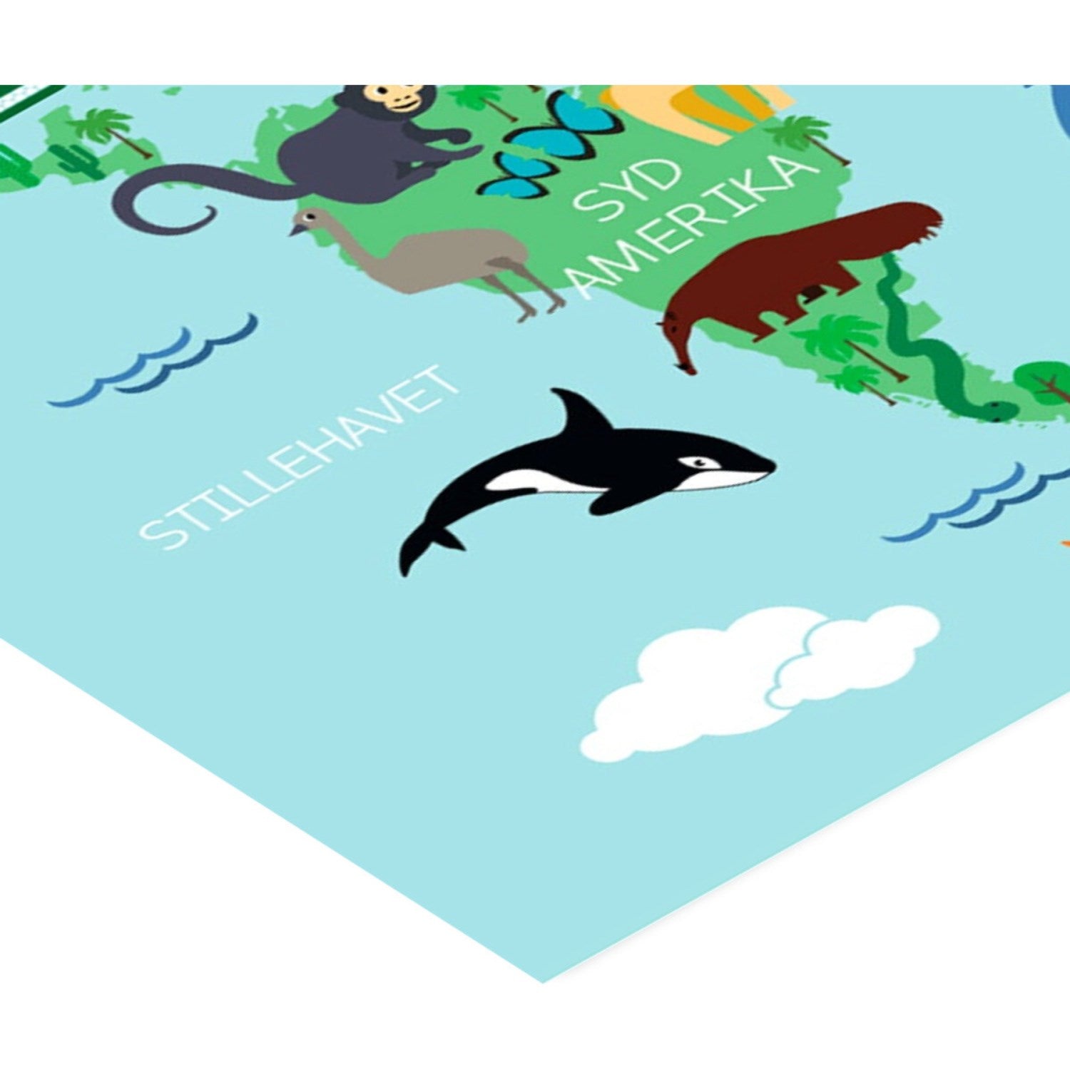 Oppdag en verden av eventyr rett på barnerommet! Denne sjarmerende plakaten forener et fargerikt verdenskart med lekne dyreillustrasjoner og gir et stimulerende tilskudd til ethvert barns læringsmiljø. Trykt på FSC-sertifisert papir i Danmark, denne miljøvennlige plakaten ikke bare støtter den kreative artisten, men den garanterer også langvarig holdbarhet.