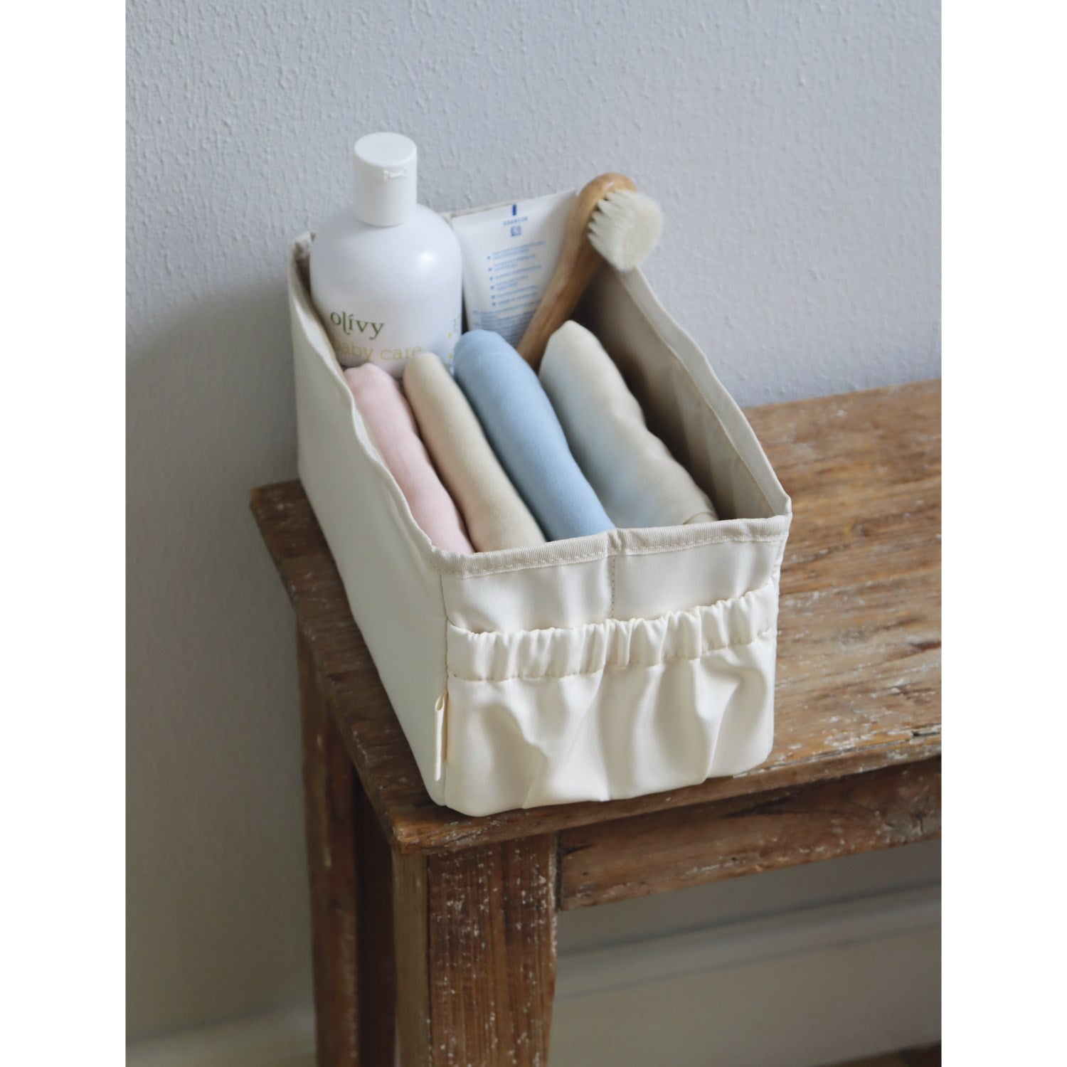 Gjør hver stellestund enklere og mer organisert med vår "That's Mine Light Creme Lucy Nursing Organizer." Denne praktiske oppbevaringsboksen er designet for å holde stelleredskaper ryddig og lett tilgjengelige. Med et stort hovedrom og en ekstra lomme, er den ideell for å oppbevare bleier, kremer og musselinkluter. Boksen kan enkelt brettes flatt når den ikke er i bruk, noe som gjør den perfekt for små rom. Vår stelleboks kombinerer funksjonalitet med et mykt, tiltalende design som passer inn i ethvert barnerom. Lett å rengjøre med en fuktig klut, denne oppbevaringsløsningen er både praktisk og stilfull, og måler 32 cm i lengde, 15 cm i bredde og 13 cm i høyde.