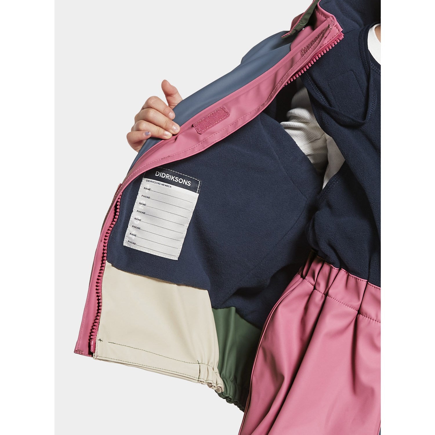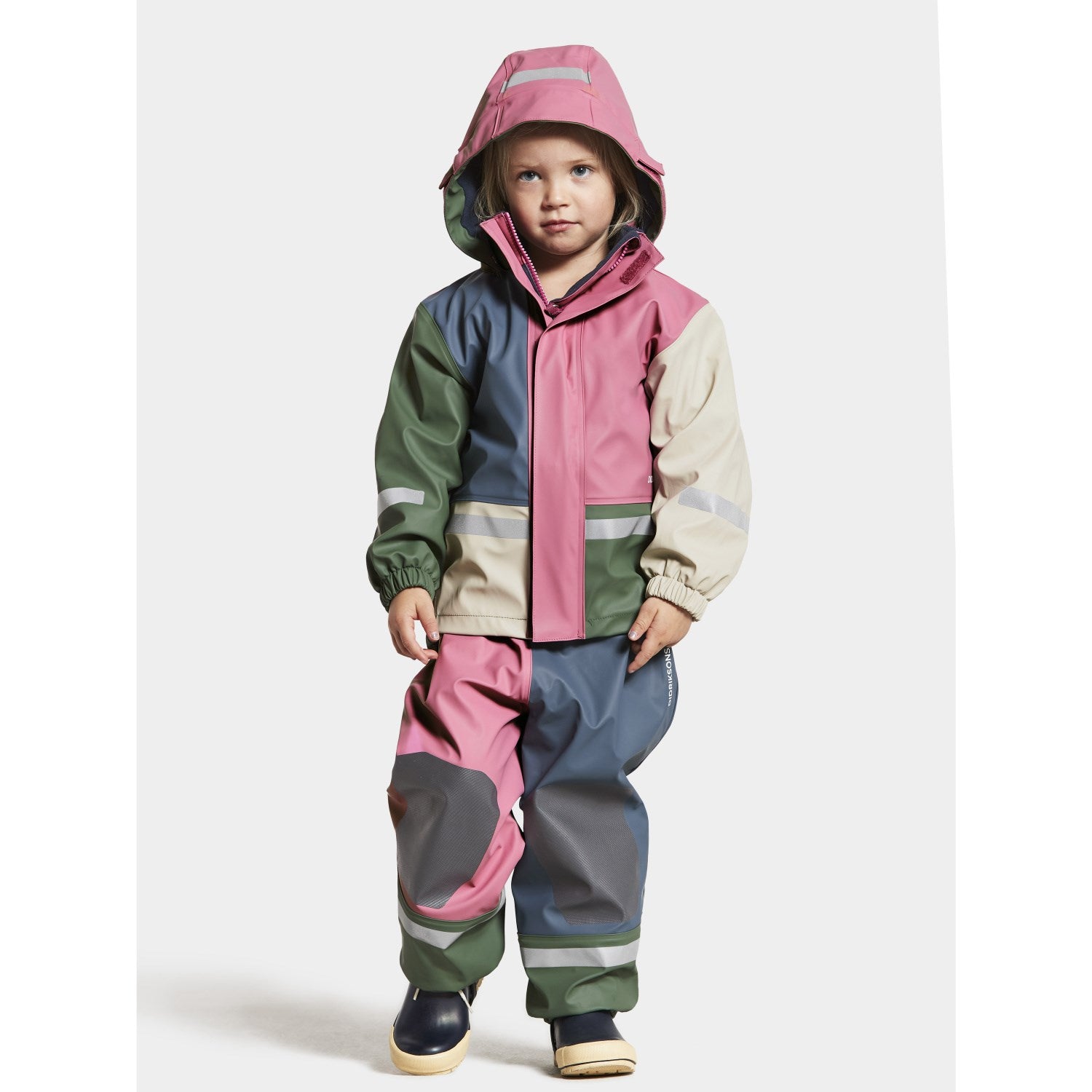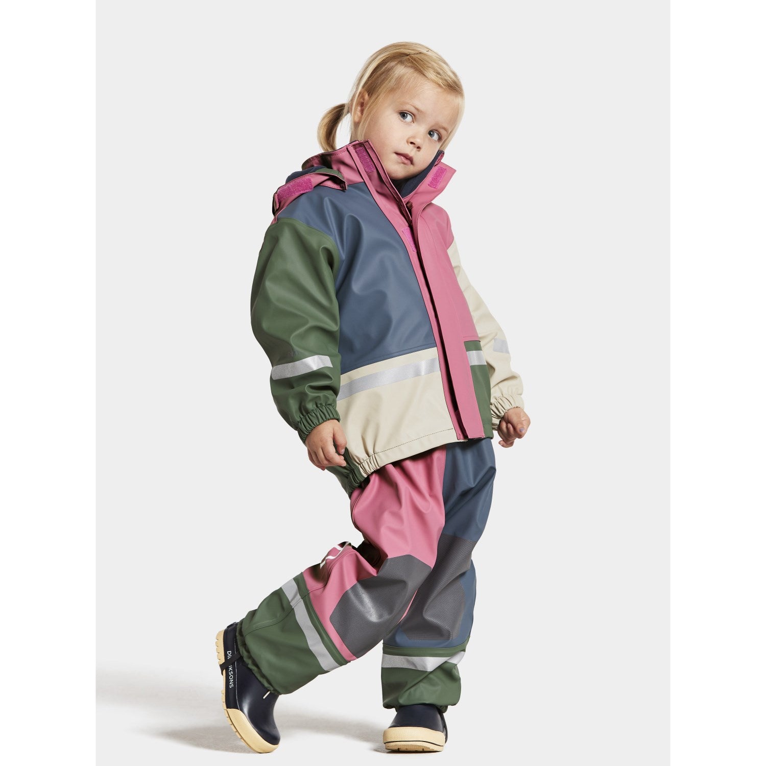 Designet kombinerer funksjonalitet med stil i en frisk rosa farge og lekne mønstre som garantert vil falle i smak hos de små. Passformen er romslig og designet for å passe perfekt over vanlige klær, og de justerbare detaljene, som mansjetter og liv, gjør det enkelt å tilpasse etter barnets vekst.