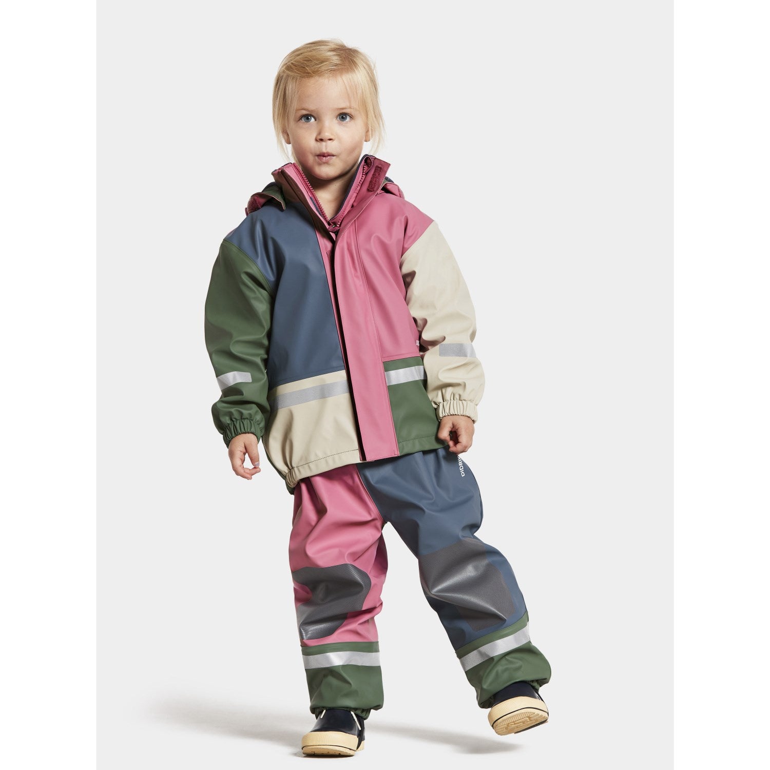 Oppdag det sjarmerende Didriksons Sweet Pink Boardman set, det perfekte regntøyet for aktive barn som elsker å utforske utendørs, uansett vær! Dette settet er laget av et robust materiale som effektivt står imot vind og regn, samtidig som det sørger for å være pustende nok til at ditt barn holder seg tørt og komfortabelt.