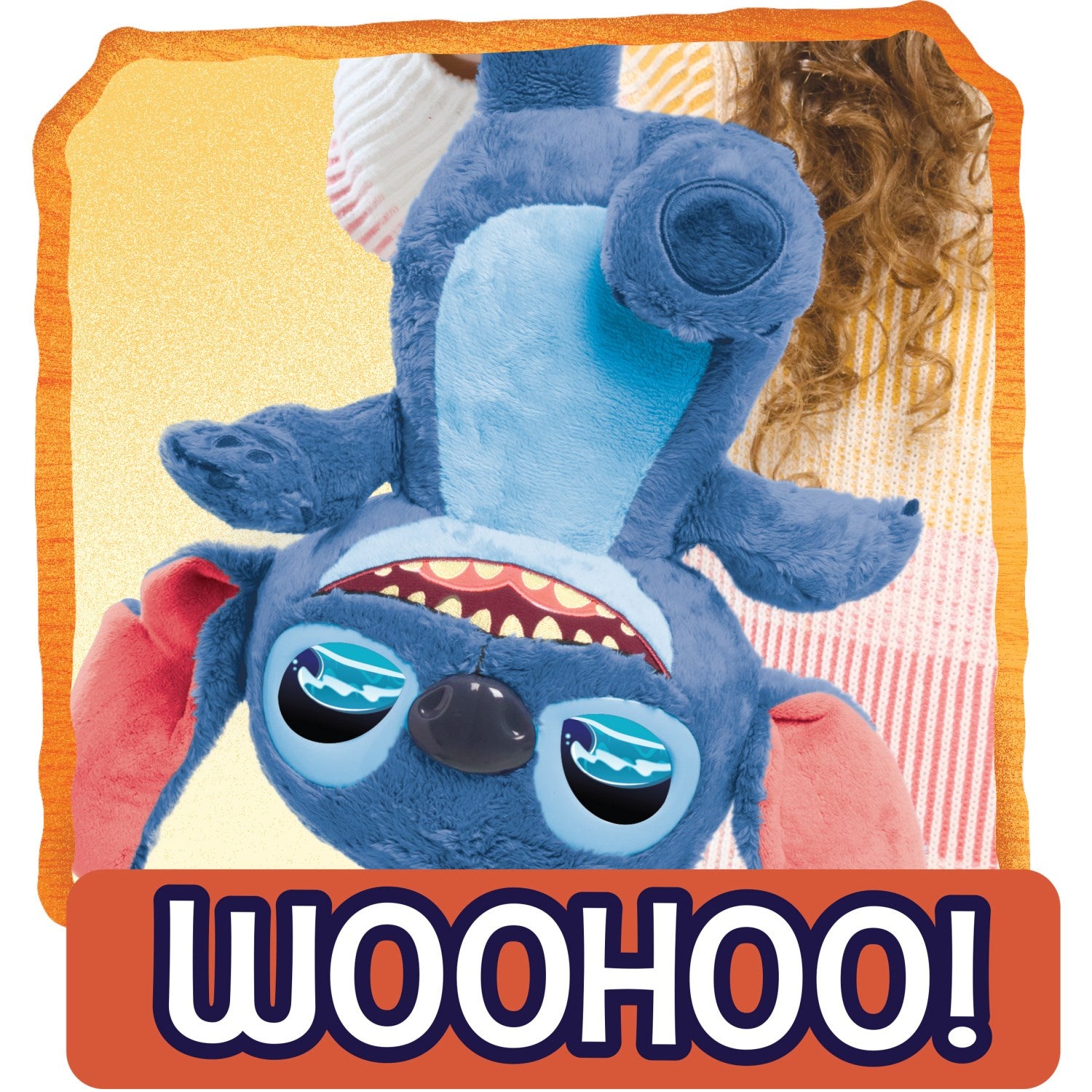 Stitch responderer på berøring og bevegelse - klø ham på hodet for å se hans ømme side, gni magen for spøkefulle lyder eller "mat" ham for å høre sultne reaksjoner. Engasjerende interaksjoner som risting og tipping aktiverer morsomme fraser og lydeffekter, mens en rolig vugge vil hjelpe Stitch å sovne med et søtt gjesp.