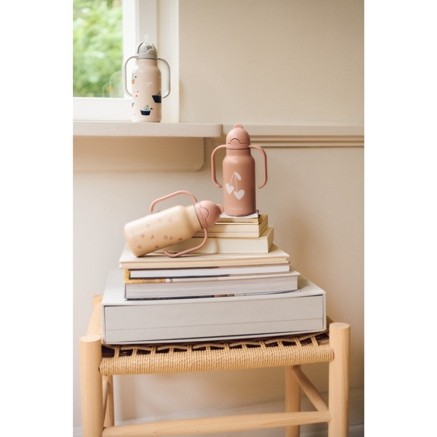 Oppdag LIEWOOD Mini Butterfly / Apple Blossom Kimmie vannflaske på 250 ml – en perfekt følgesvenn for de små! Med et brukervennlig design utstyrt med to håndtak og et innebygd sugerør, tilrettelegger denne flasken for selvstendig drikking. Flasken er laget av 80 % resirkulert premium rustfritt stål, noe som sikrer både sikkerhet og kvalitet. Det stabile og lekkasjesikre materialet gjør den ideell for daglige eventyr. Lett å vedlikeholde og rense, i tillegg til å være ypperlig for oppbevaring og organisering i barnehagen eller på utflukter.