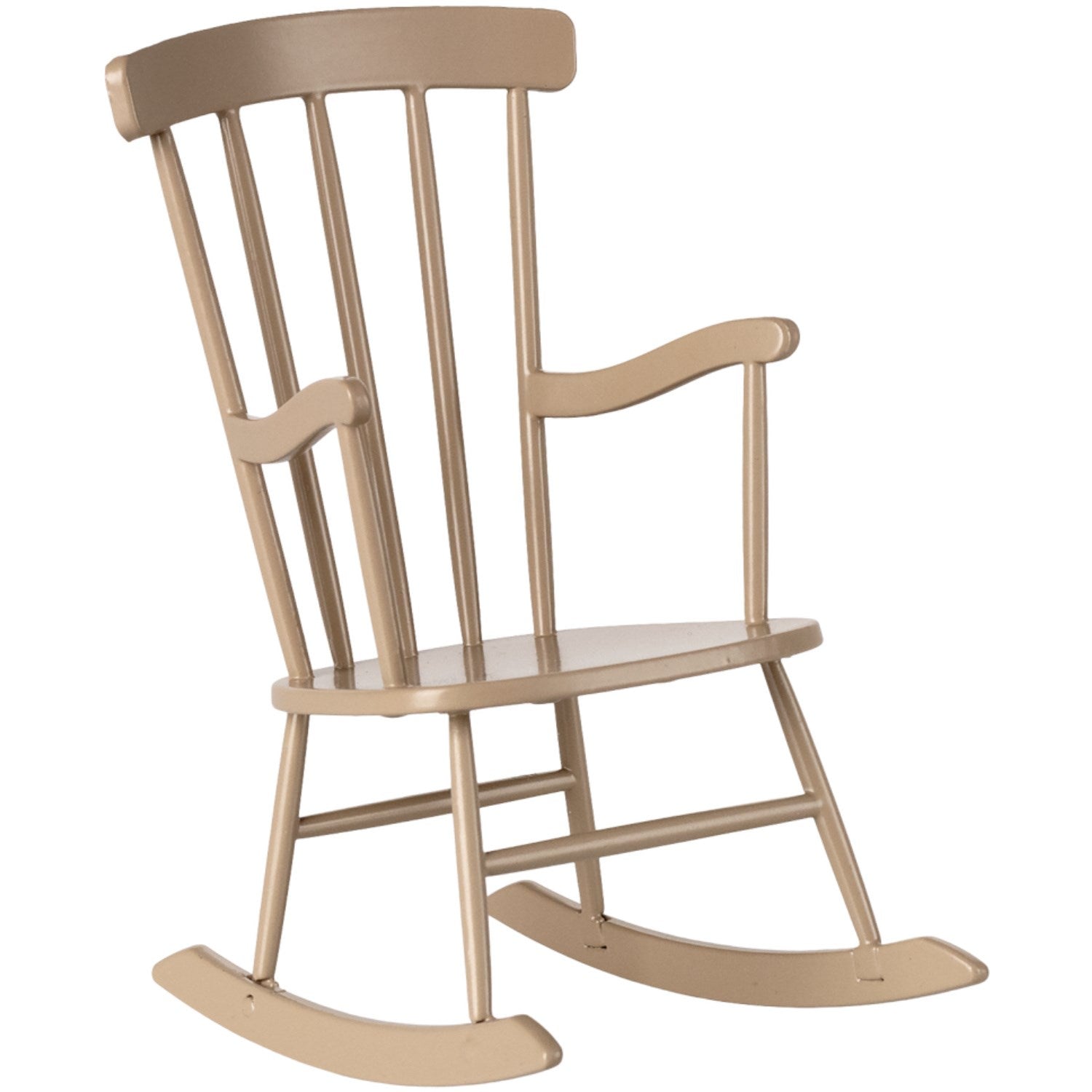 Oppdag Maileg Gyngestol i Miniature for dukker, utformet i en elegant mørk sandfarge. Denne gyngestolen sikrer at dine barnekompiser – fra kaniner og harer i størrelse 1 og 2 til hele Teddy-familien – kan slappe av og drømme søtt. Stolen er laget for sikker og enkel bruk av barn, samtidig som den bidrar til kreativ lek og læring. Lett å flytte og oppbevare, passer den perfekt sammen med andre miniatyrmøbler for å forme en harmonisk lekestue.